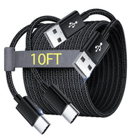 Extra Long: With The 10Ft Length, You Can Lie On The Sofa Or Couch And Use Your Devices While You Are Charging At The Same Time. And You Can Use Freely In Your Bedroom, Office And Even In The Backseat Of Your Car. Package Including 2 Pcs X 10Ft Usb C Charger Cable Superspeed Syncing Transfer Data To And From All Your Usb Devices At Speeds Of Up To 480Mbps. High Durability The Cable Features A Braided Cord That Is Resistant To Kinking, Bending, And Environmental Damage. Aluminum Housings Provide Added Durability.