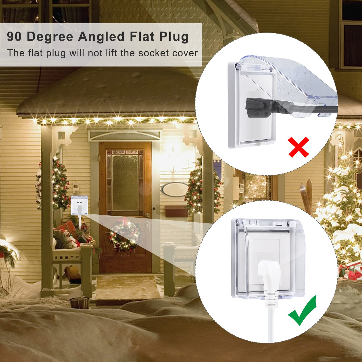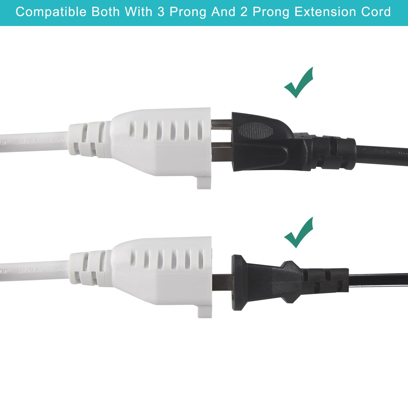 [2Pack] 2 Way Outdoor Extension Cord Splitter - White 2Ft 1 To 2 Splitter Extension Cord, 125V 13 Amp 16Awg 2 Way Waterproof 90-Degree Flat Plug Short 3 Prong Y Splitter Extension Cord With 2 Outlets