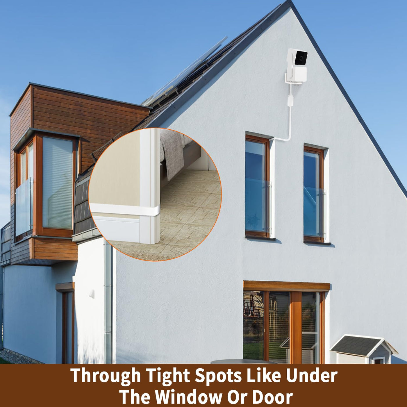 Q: How long is the cable and how does it benefit camera placement?A: The cable is 25ft (7.5m) long, providing ample length for flexible camera placement. This extended reach allows you to position your camera away from power outlets, eliminating the limitations of shorter cables and enabling you to place your camera exactly where you need it.