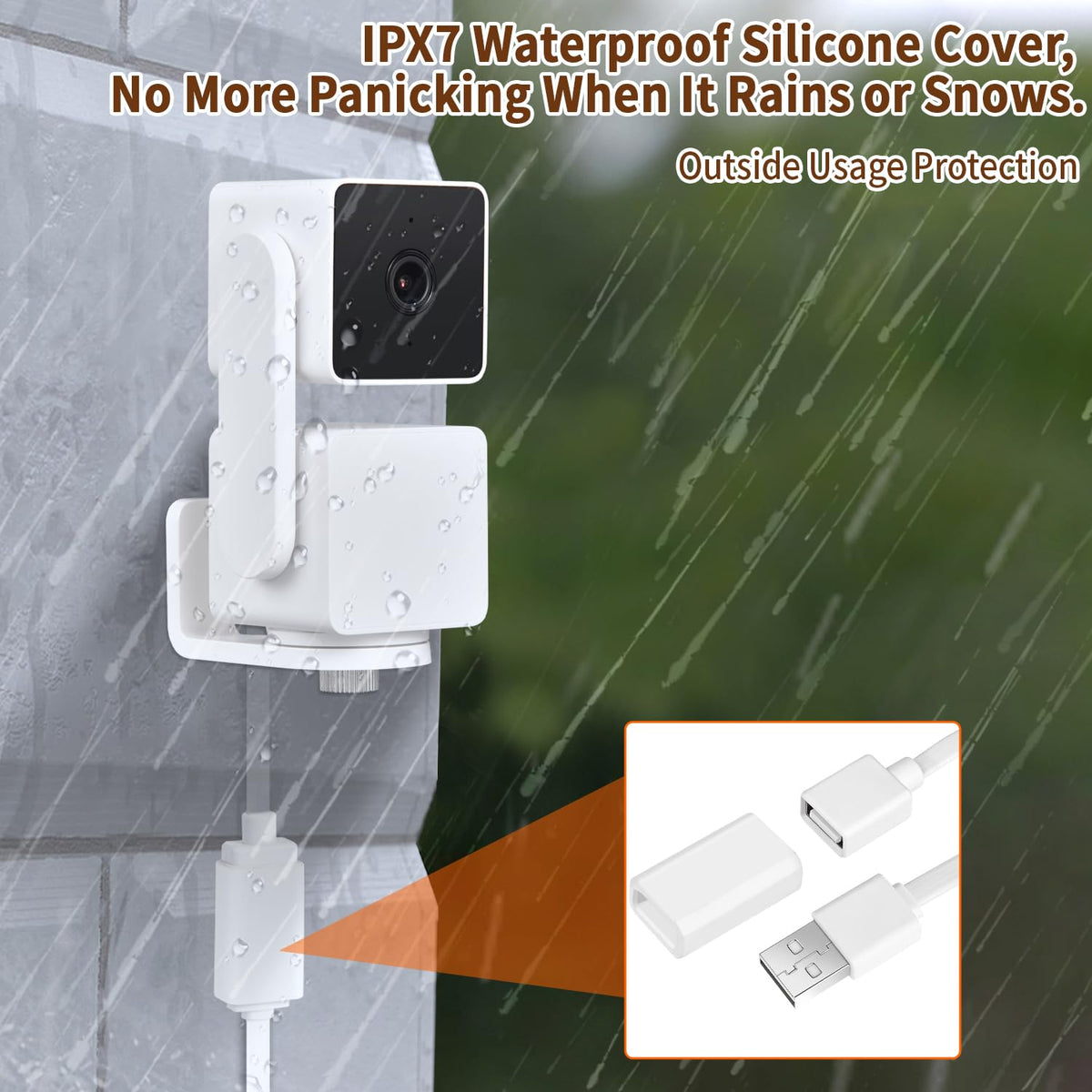 Q: What should I do if the cable gets wet during outdoor use?A: With its IPX7 waterproof design featuring a silicone waterproof sleeve, the cable is protected against rain and snow. However, for optimal longevity, ensure that all connections are secure and avoid submerging the cable in water.