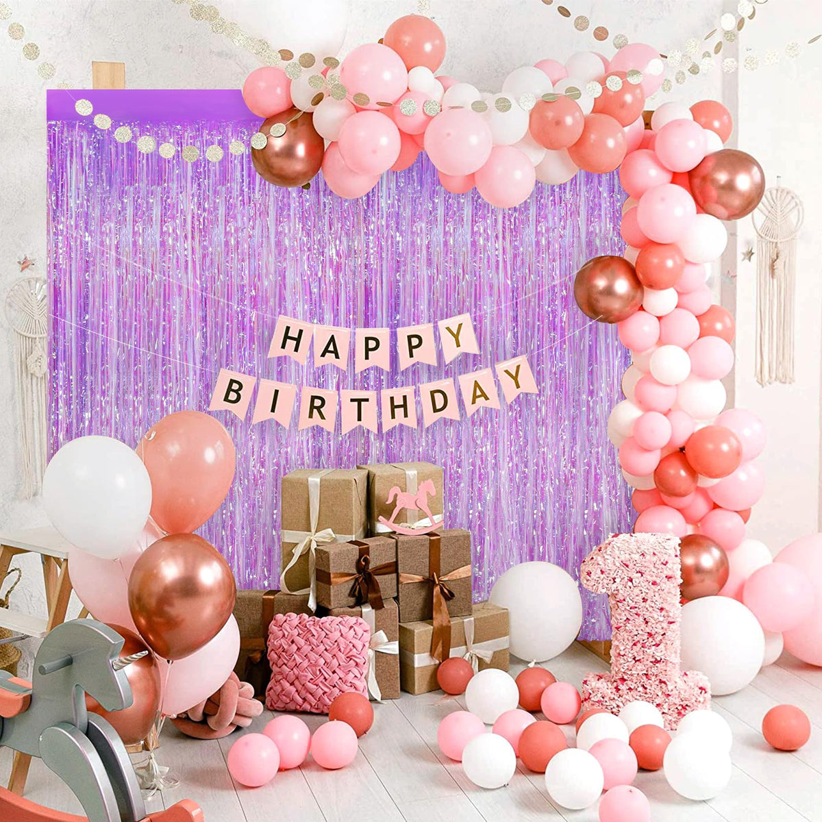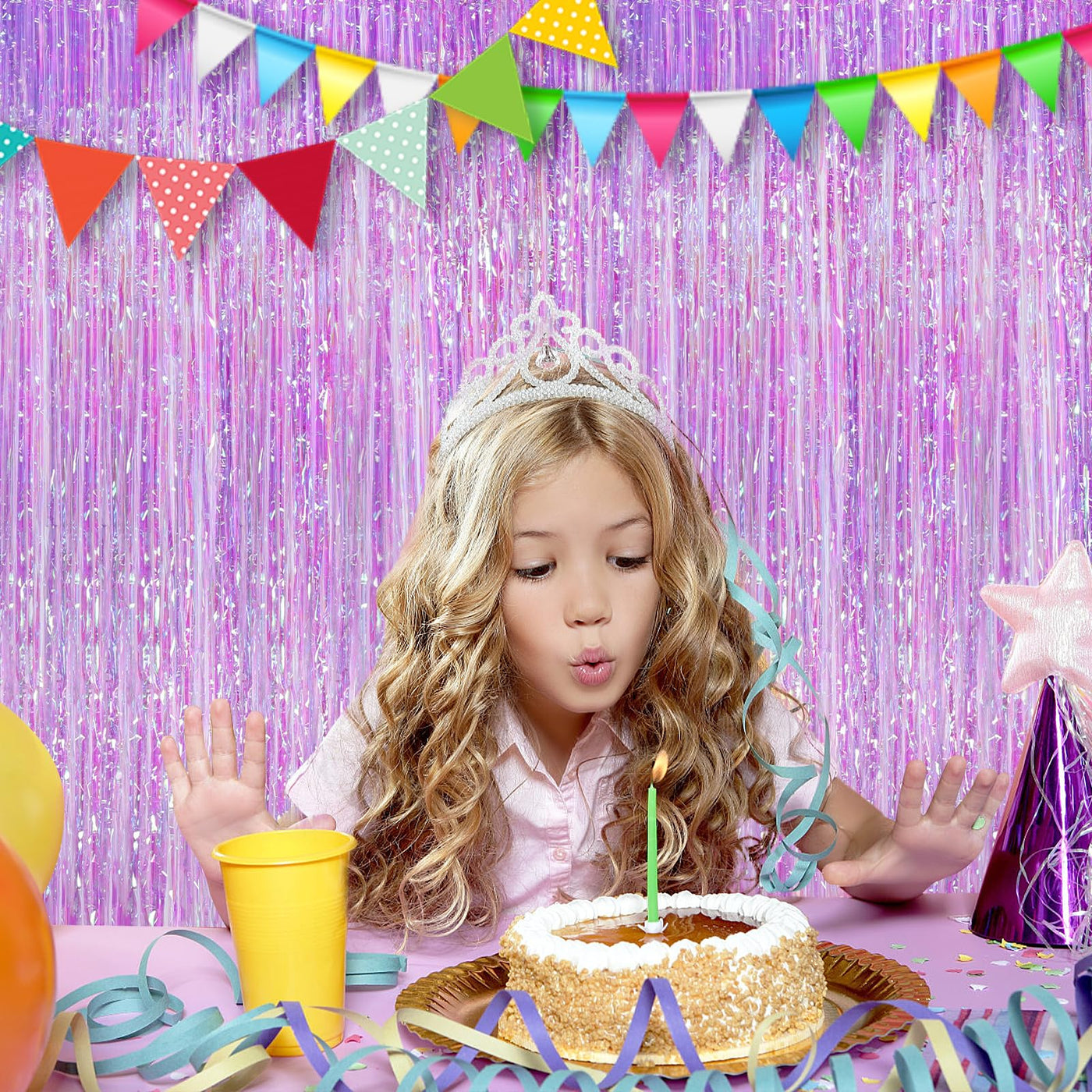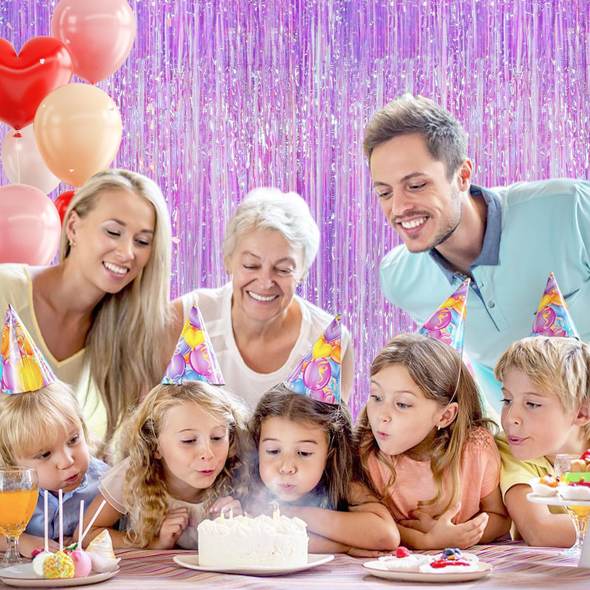 2Pack 3.3X8.3Ft Iridescent Purple Streamers Foil Fringe Curtains Neno Purple Tinsel Door Curtains Photo Booth Backdrop For Weddi