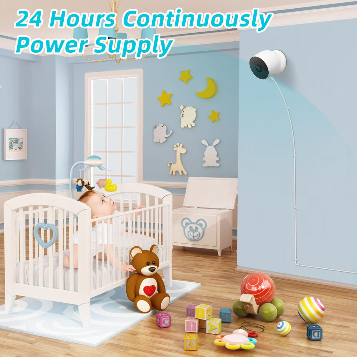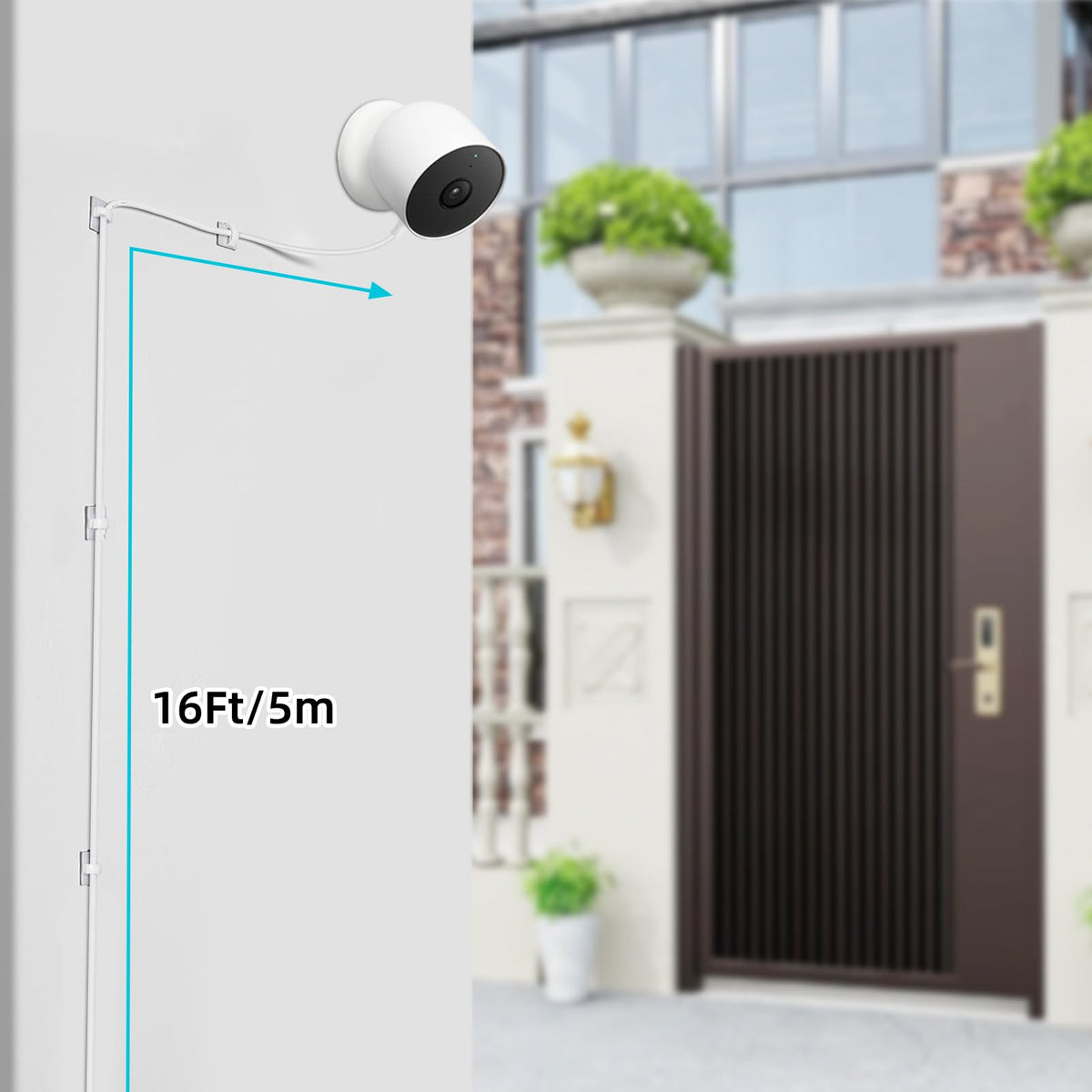 Q: How long is the charging cable included in the package?A: The package includes a 16FT/5M weatherproof charging cable, providing ample length for flexible installation in various locations.