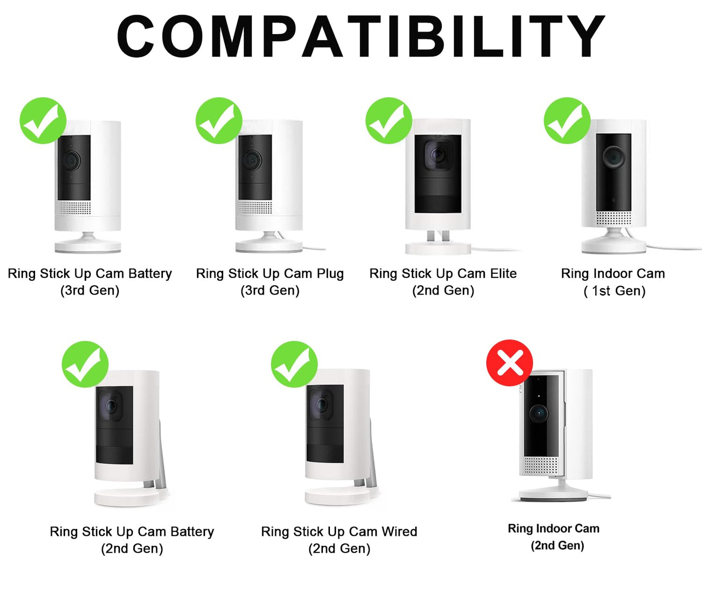 Q: What cameras are compatible with the SZAOYU Flexible Clamp Mount?A: The SZAOYU Flexible Clamp Mount is compatible with various models, including the Stick Up Cam & Indoor Cam (1st Gen), Stick Up Cam Plug-in, Stick Up Cam Elite, Stick Up Cam Battery, as well as 2nd Gen & 3rd Gen models. It also fits other cameras with a standard 1/4 threaded hole, such as Eufy Cam, Roelink Argus, and Arlo Cameras.