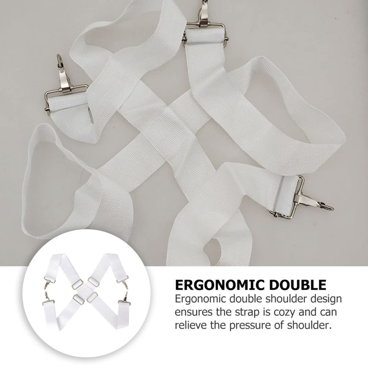 Package Include 2 X Drum Double Shoulder Strap Features -Material: Nylon Bass Drum Strap. -Color: White Bass Drum Pedal Strap. -Size: About 144.00X5.00X1.00Cm/56.59X1.97X0.39In Drum Shoulder Sling. - Equipped With Metal Strap Buckle, Easy To Adjust And Can The Strap From Slipping Off Effectively Bass Drum Shoulder Belt. - Made Of Nylon Material, Which Is , Sturdy And Comfortable To Use Snare Drum Belt. - Ergonomic Double Shoulder Design Ensures The Strap Is Cozy And Can Relieve The Pressure Of Shoulder Side. - There Are Metal Clasps Of The Straps, Resistant To And Convenient To Take On And Off Leather Snare Drum Sling. - And Maintain, Suitable For Drum, Bass Drum, Waist Drum, Etc, An Indispensable Accessory For Your Drum Snare Drum Shoulder Strap.Goods Information Drum Belt It Is More Labor-Saving Than Traditional Single-Shoulder Straps.Marching Snare Strap Made Of Nylon Material, The Structure Is And , And It Is Built According To Ergonomics.Bass Drum Sling It Is Bass Drum.Adjustable Parade Marching Bass Drum Shoulder Strap Sling Metal Clip The 4-Hook X-Shaped Design Is Unique And Beautiful