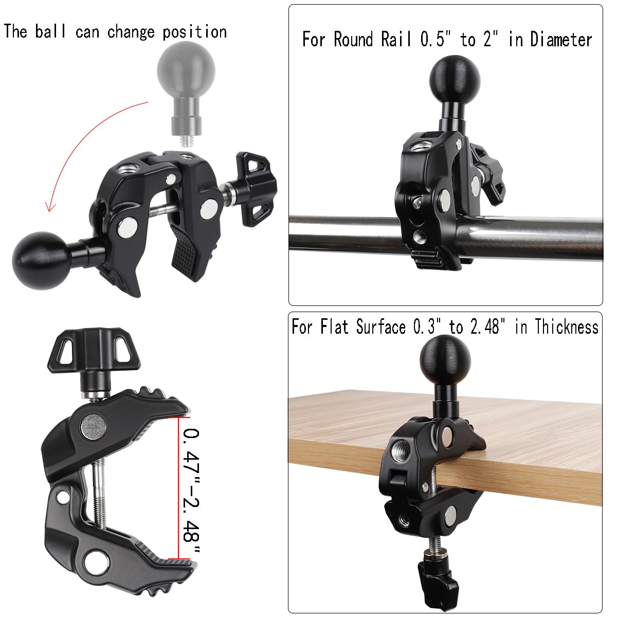 2Pcs Metal Handlebar Super Clamp Mount Base With 1'' Ball, Fence Desk Table Mount, Compatible With Ram Mounts B Size Double Sock