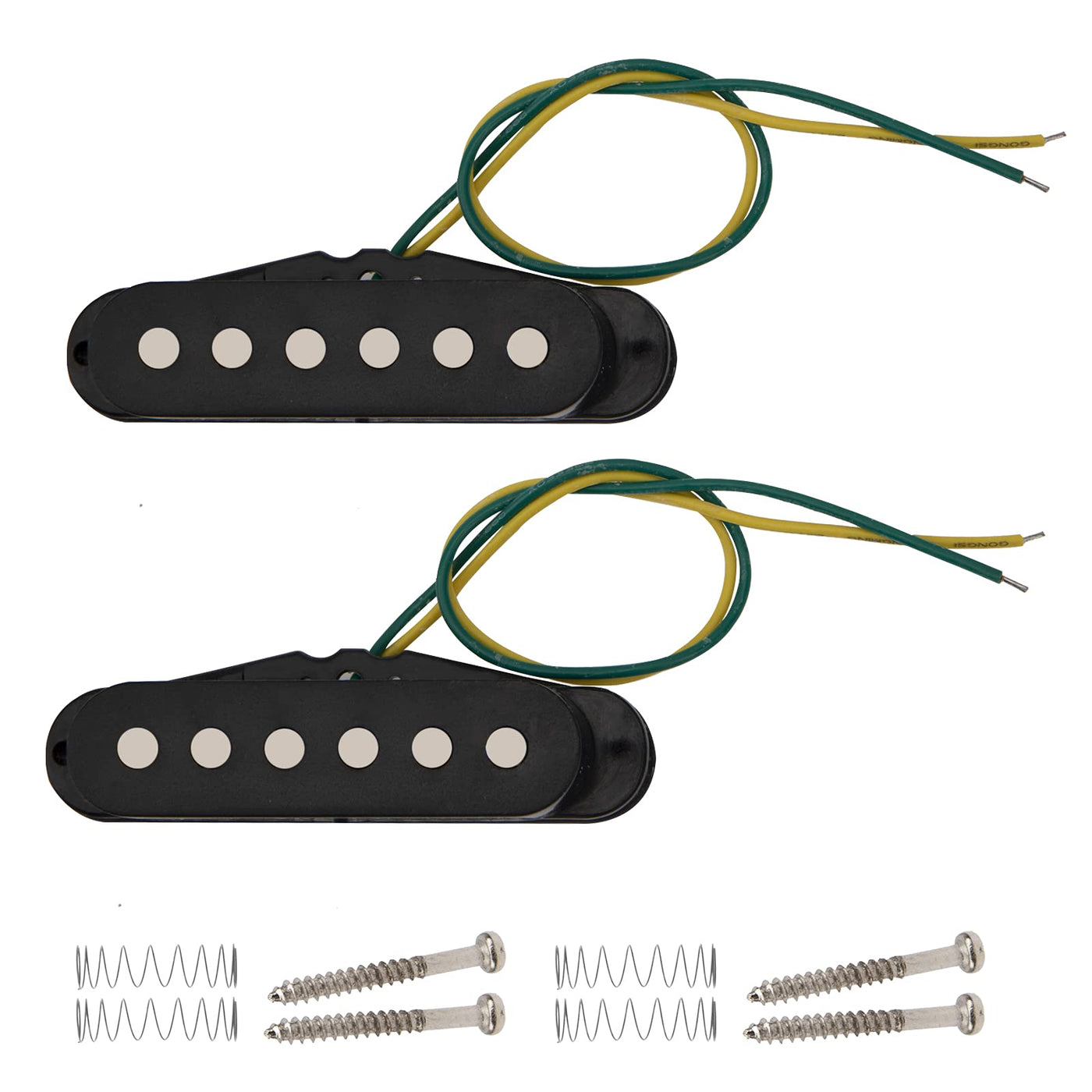Electric Guitar Single Coil Sound Pickup Audio Transducer Are Compatible With St Strat Stratocaster Guitar. Electric Guitar Single Coil Sound Pickup Audio Transducer Is Made Of Premium Material, Solid And Anti-Aging, Durable To Use. Easy To Install.A Good Replacement Part For Broken Or Old One. Low Noise, High Sensitivity, Stable Performance. This Is A Great Single Coil Pickup And Replacement Part For St Electric Guitar. Product Specification: 100% Brand New Material Of Cover: Plastic Color: Black, Yellow(Optional) Size: 84.4 X 23 X 27.7Mm/3.32 X 0.90 X 1.09In Weight: 59.5G/Pcs Package Content: 2 X Pickup 4 X Springs 4X Mounting Screws Note: 1.If You Are Not Satisfied With Our Product You Received, You Can Send Emails To Us At Any Time. We Will Reply You Instantly And Help You Solve Your Problem. Key Product Features. 2.Due To Different Monitors, There May Be A Little Color Difference.