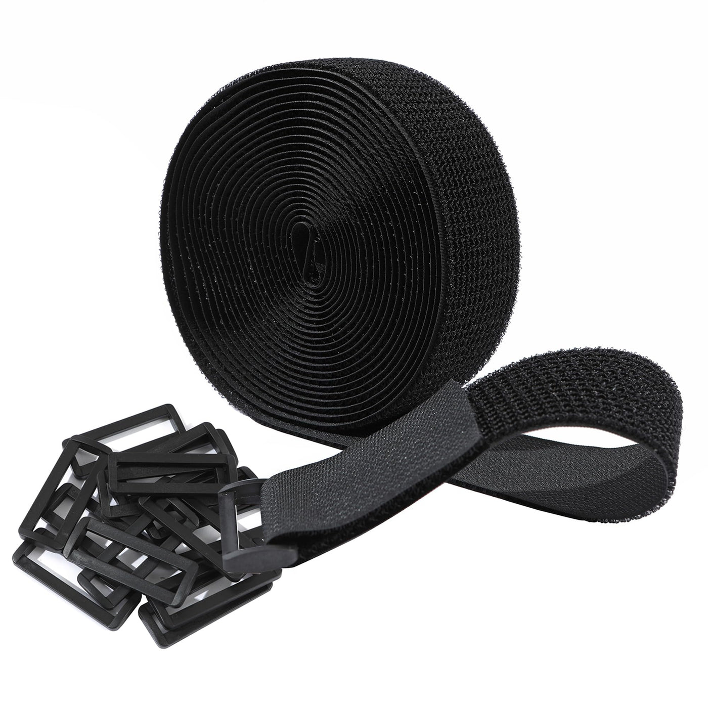 Get Organized And Declutter Your Home, Office, Garage, Workshop, And Life With Our Versatile And Flexible Cable Ties. The Possibilities Are Endless - Use Them For Tidying Cables, Tools, Stationery, Camera Gear, Fishing Equipment, Cycling Accessories, Sports Gear, And More! These Hook And Loop Straps Are Reliable For Bundling And Securing Anything You Need. Keep A Pack Handy For Whenever You Need Them. Easy To Use: Simply Tie The Item With A Cable Strap And Fasten With The Hook And Loop. High-Quality Nylon Material: Made Of Durable Nylon Material, Our Reusable Cable Ties Are Long-Lasting And Resistant To Deformation. The Hook And Loop Strap Has The Characteristics Of High-Temperature Water Washing Resistance, Sunlight Resistance, Stable Quality, Even Bristles, Not Easy To Break, And Strong And Tight Lateral Tension. Hook And Loop: The Hook And Loop Cinch Straps Are Easy To Add, Remove, Or Adjust Whenever Needed. They Are Reusable And Maintain Their Adhesive Force After Multiple Uses. Self-Adhesive On The Same Side: The Hook And Loop Are Intertwined On The Same Side, So It Can Be Self-Adhesive On One Side, Can Be Easily Made Into Cinch Straps, And Can Also Be Used For Sewing. Freely Cuttable: Cut To Required Lengthof The Straps To Fit A Variety Of Items. Thick Plastic Buckles: With Thick Plastic Buckles, Our Diy Cinch Straps Are Even Stronger And More Durable. Lightweight And Offering Good Insulation Performance.