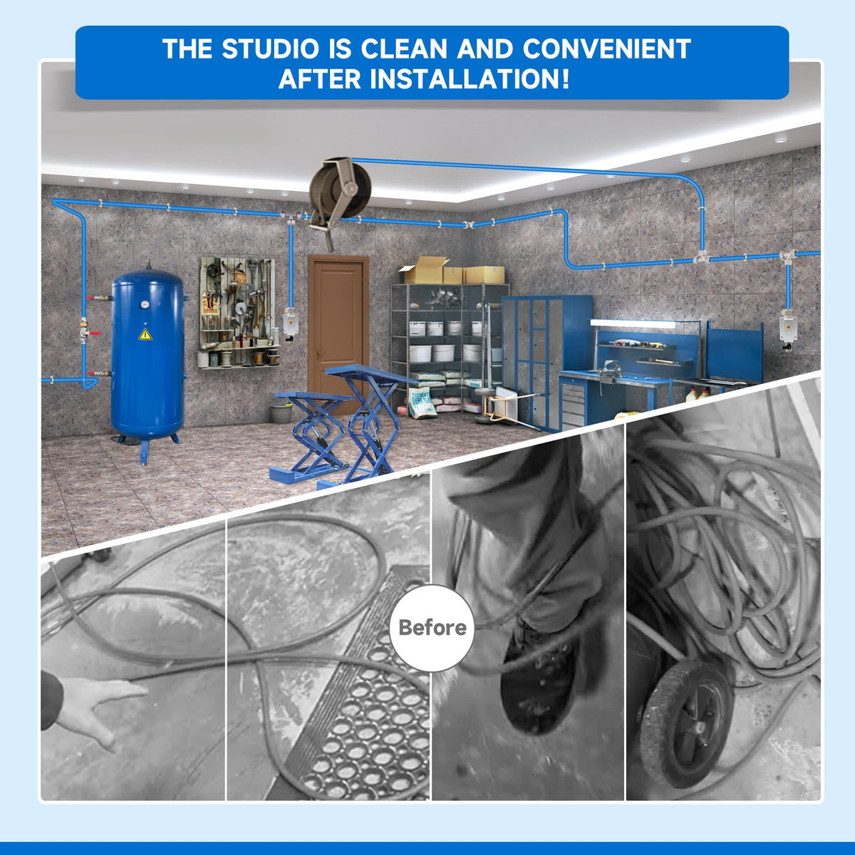3/4 100&200&300Ft Compressed Air Line Kit For Shop/Garage, Hdpe-Aluminum Rapid Air System Includes Right Angle Fittings And Tee