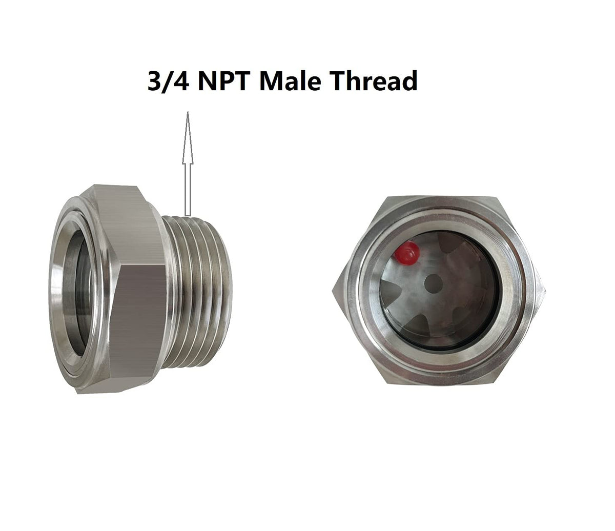Q: How can I ensure I am using the correct thread size for this sight glass?A: The 3/4 NPT Male thread size is a nominal measure and does not represent the actual diameter. It is recommended to check the size chart for the specific thread diameter to ensure proper compatibility.