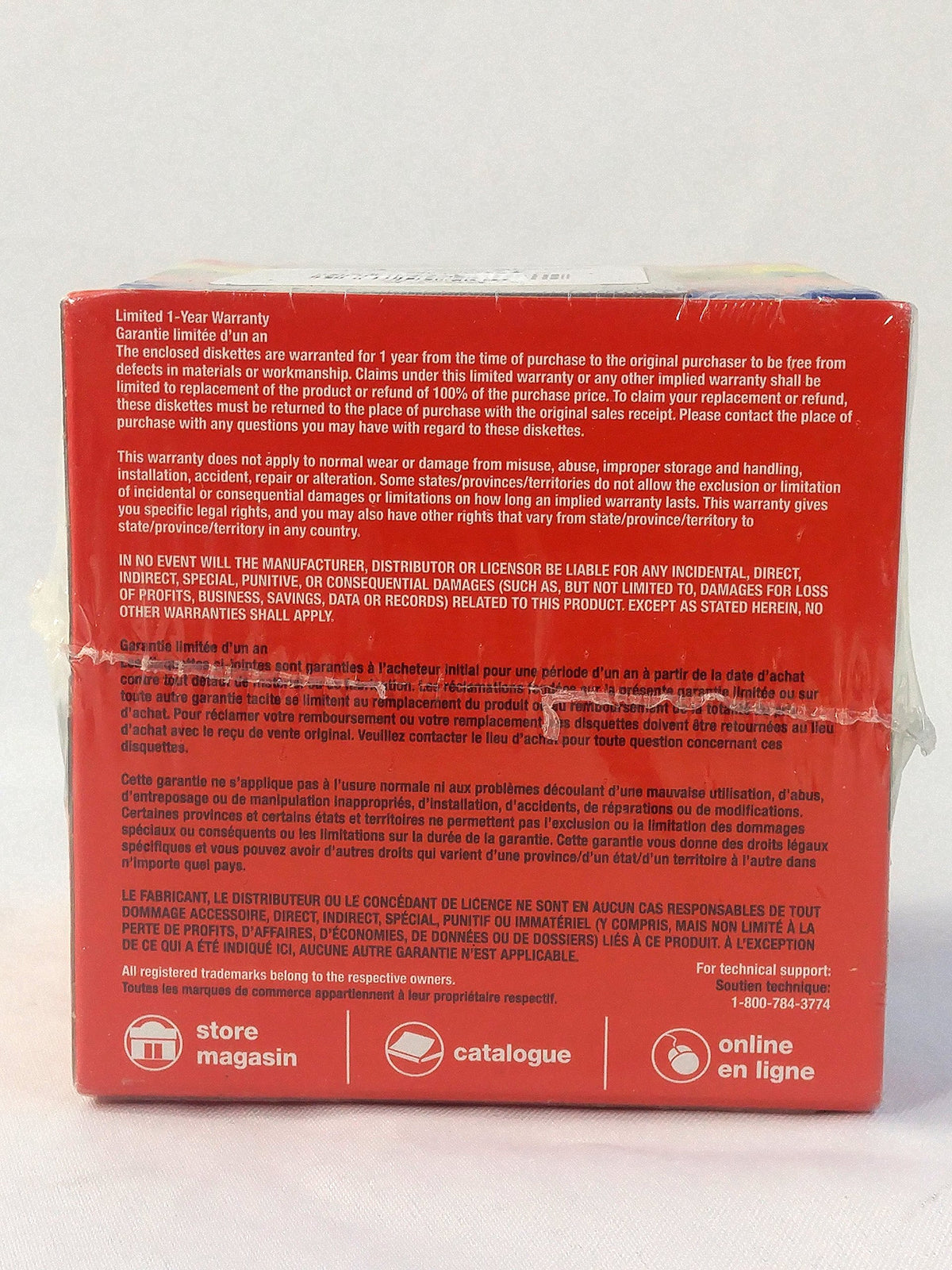 Q: What is the storage capacity of these floppy disks?A: Each 3.5-inch floppy disk in this pack has a storage capacity of 1.44 MB, making them suitable for transferring small files and documents.