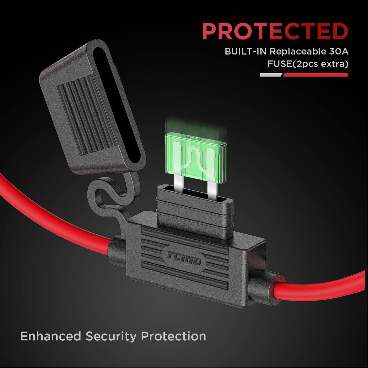 [Ul Listed] Ycind 3/8'' Ring Eyelet Terminal Battery Boost Cable Heavy Duty 30A Fuse 12V/24V 12Awg Cord 6Ft