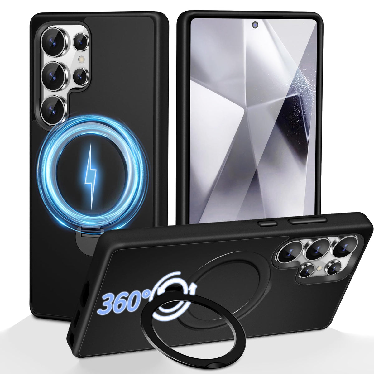 3-In-1 [360 Spin Stand+Magnetic+Ring Holder] Case For Samsung Galaxy S24 Ultra Fit For Magsafe, Military Grade Protective, Trans