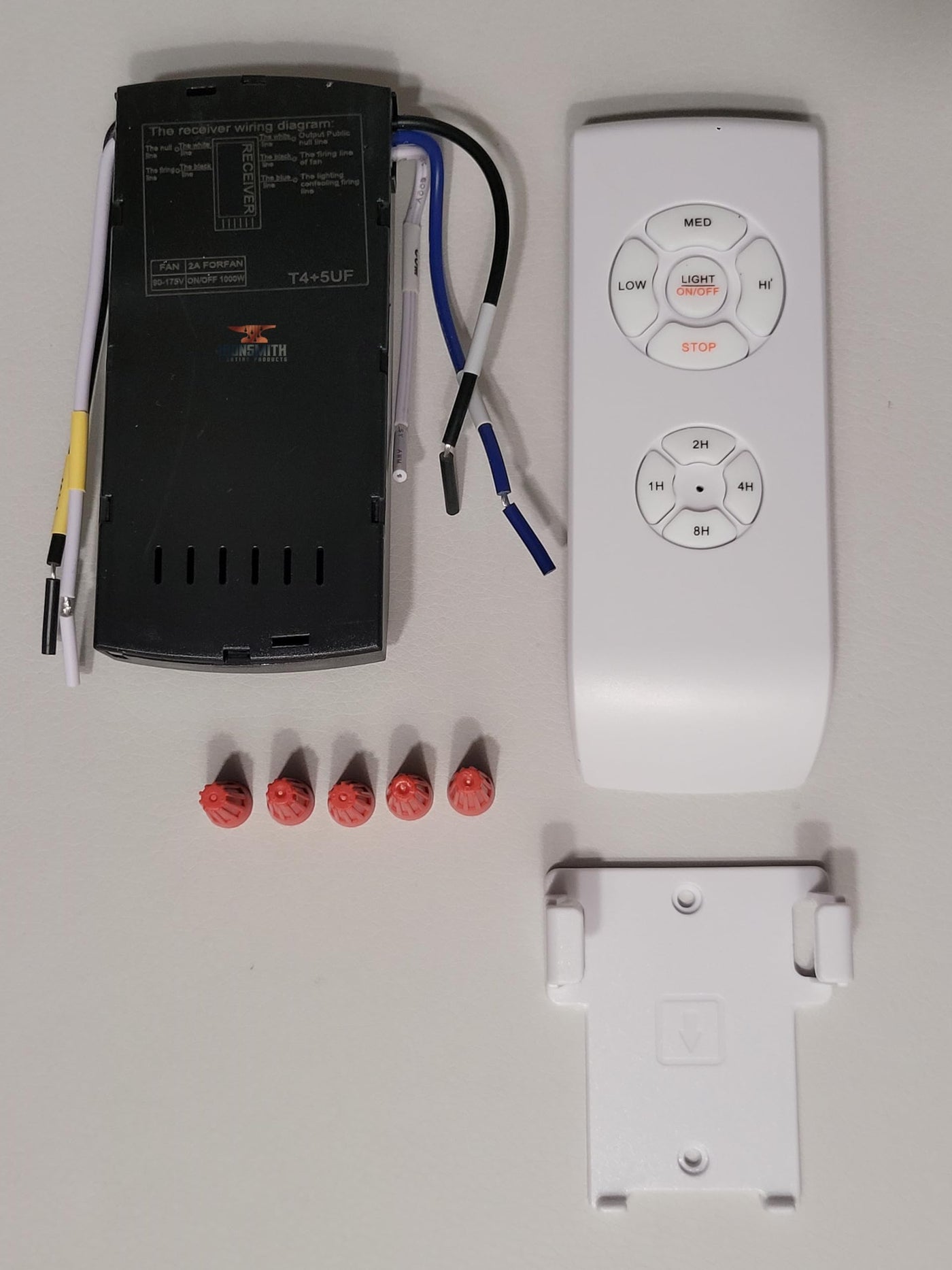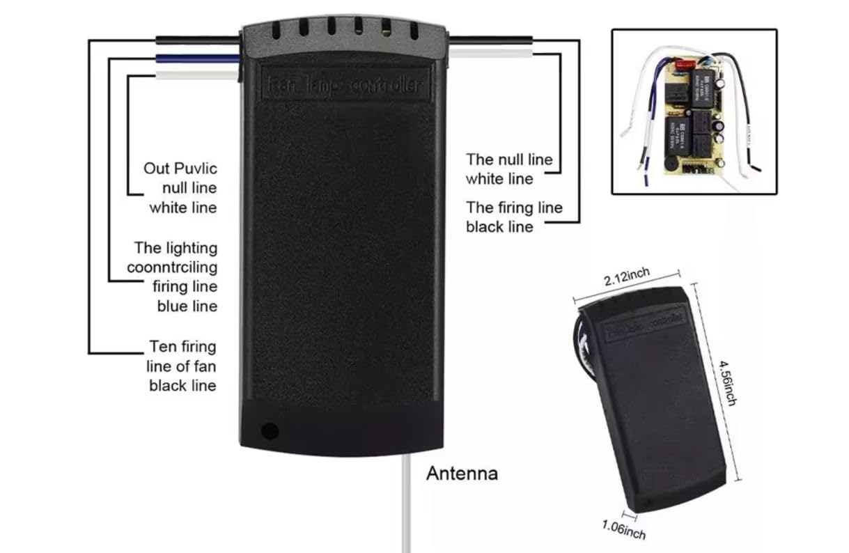 Transform Your Ceiling Fan Into A Smart, Remote-Controlled Marvel With The Universal Ceiling Fan Remote Controls Kit! ?? Say Goodbye To Complex Installations - This Kit Is Designed For Easy Setup With Just A 5-Wire Hookup. No Need To Remove The Light Kit Or Blades! Simply Loosen The Collar At The Ceiling, Slide It Down To Access The Wires, And Connect Two Wires From The Ceiling To Power The Remote. The Remaining Three Wires Are Connected To The Fan For Complete Control. Upgrade Your Fan Effortlessly And Enjoy The Sleek Design Of The Remote. ?? So Simple To Install! ??? Installation Is A Breeze, And The Remotes Design Is Unmatched. Just Ensure Theres Enough Space In The Ceiling Fan For The Remote Box. With Only A 5-Wire Hookup, The Most Challenging Part Was Placing The Receiver In The Canopy. Connecting The Receiver To The Fan Was Easy, And Connecting It To The House Wiring Was Even Easier. This Ceiling Fan Remote Includes A Holder For The Wall Switch Or Bedside Mounting, Allowing You To Leave It Over The Wall Switch Or Use It Like A Remote. Its Incredibly Convenient To Control The Fan Without Getting Out Of Bed. Youll Love It! *****Make Sure To Check Your Canopy Or Junction Box Will Fit The Receiver Before Purchase. We Also Offer A Smaller Version For More Compact Fixtures And Applicaitons*****
