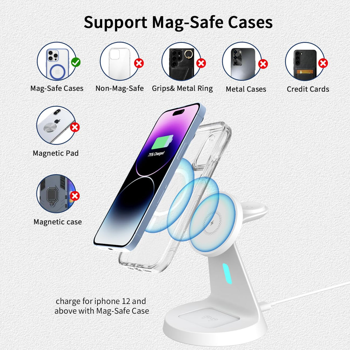 3 In 1 Charging Station Compatible With Magsafe Charger Wireless Charging Station For Iphone 16 15 14 13 12 Series Wireless Char