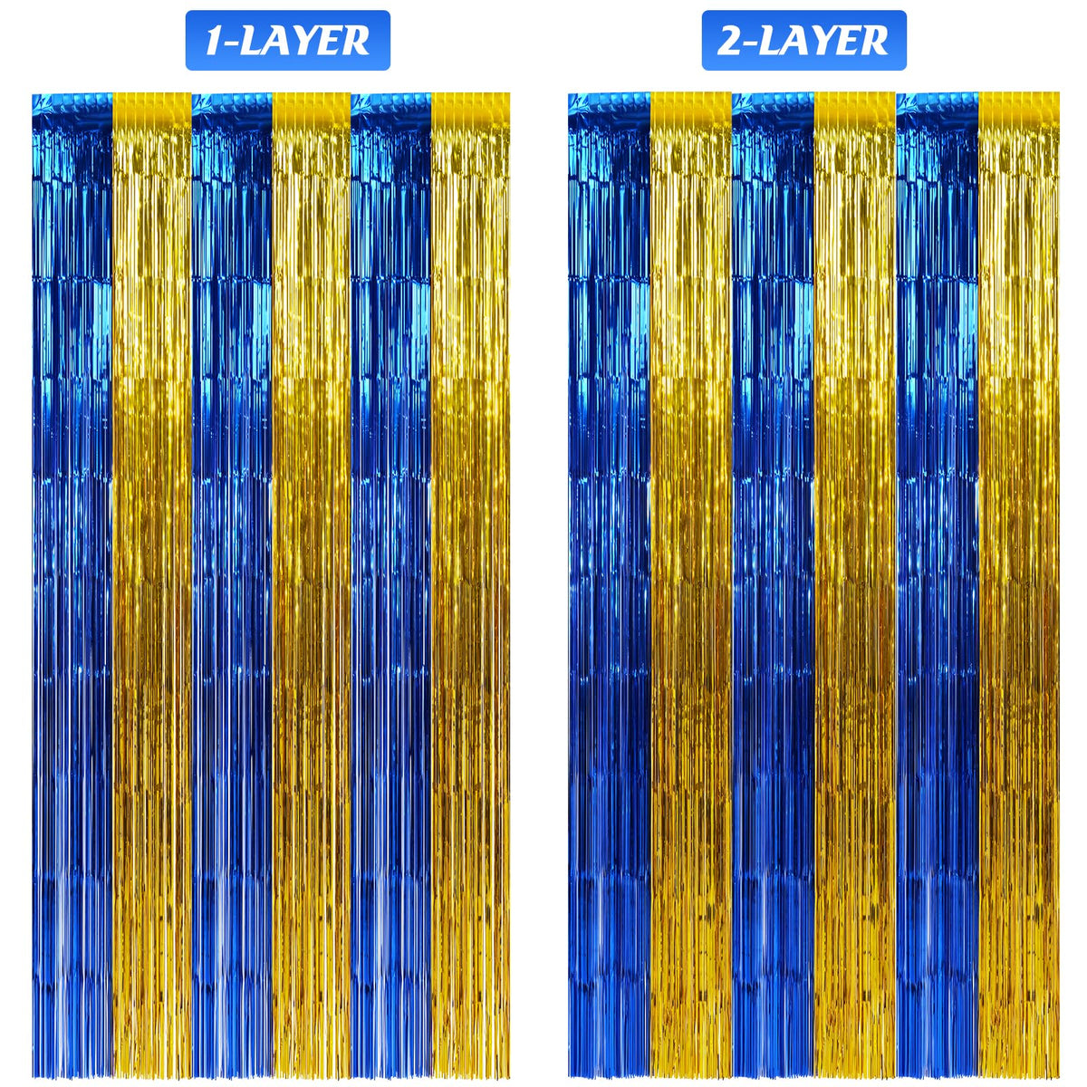 Q: Can these curtains be used for outdoor events?A: Yes, the blue and gold fringe curtains can be used for both indoor and outdoor decorations, providing a festive backdrop for any occasion.