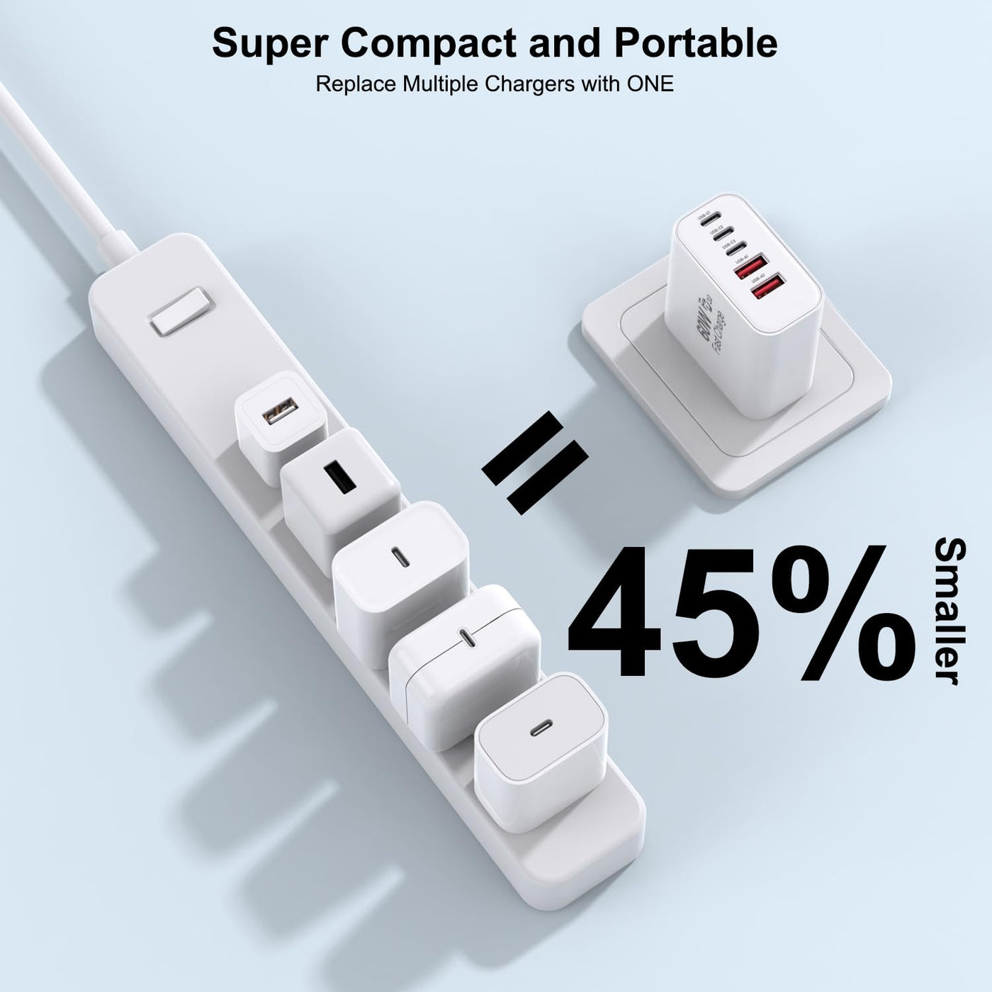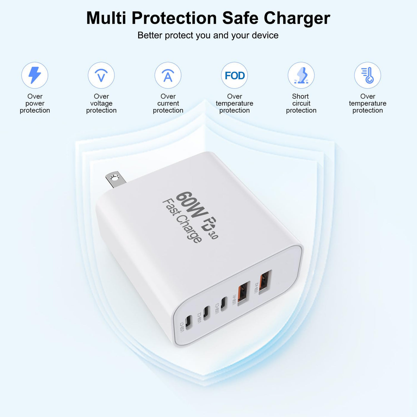 5-Port Smart Design For More Devices Charging :-Three Usb C Ports And Dual Usb A Port In One Charger.-Tired Of Managing Multiple Chargers? Charge Your Iphone,Ipad,Apple Watch And Airpods Simultaneously With Just One Usb Plug ----- No More Cluttered Interfaces.High-Speed Charging For Iphone And Android Phone :-The 30W Type C Power Delivery Port Achieves Up To 3X Faster Charging For Iphone 16/15 Series And Older Iphones (Compared To The 5W Adapter), While The 10W Usb-A Port Provides 2X Faster Charging For Android Smartphones Supporting Quick Charge.Superior Safety System :-Usb Fast Charging Block Is Ul-Certified And Features A Built-In Intelligent Chip That Provides Multi-Protection Against Overheating,Overcurrent,Overvoltage,Overcharge And Short-Circuit Faults,Ensuring Safe And Stable Charging For All Connected Devices.Universal Compatibility:For Iphone:-Iphone 16/16 Pro/16 Pro Max/16 Plus/16E-Iphone 15/15 Pro/15 Pro Max/15 Plus-Iphone 14/14 Pro/14 Pro Max/14 Plus-Iphone 13/13 Pro/13 Pro Max/13 Mini-Iphone 12/12 Pro/12 Pro Max/12 Mini-Iphone 11/11 Pro/11 Pro Max/Air Pods-Iphone Se/Xs/Xs Max/Xr/X/8/7 Plusfor Ipad:-Ipad Pro 12.9 / 11 / 10.5 / 9.7 Inch (2015 - 2022)-Ipad Air 1 / 2 / 3 / 4 / 5-Ipad Mini 1 / 2 / 3 / 4 / 5 / 6-Ipad 4 / 5 / 6 / 7 / 8 / 8 /10-Air Pods / Apple Watch And More Devicespackage Included:-3 X 60W Pd 5-Port (3 Usb C + 2 Usb A)Usb Fast Wall Charger
