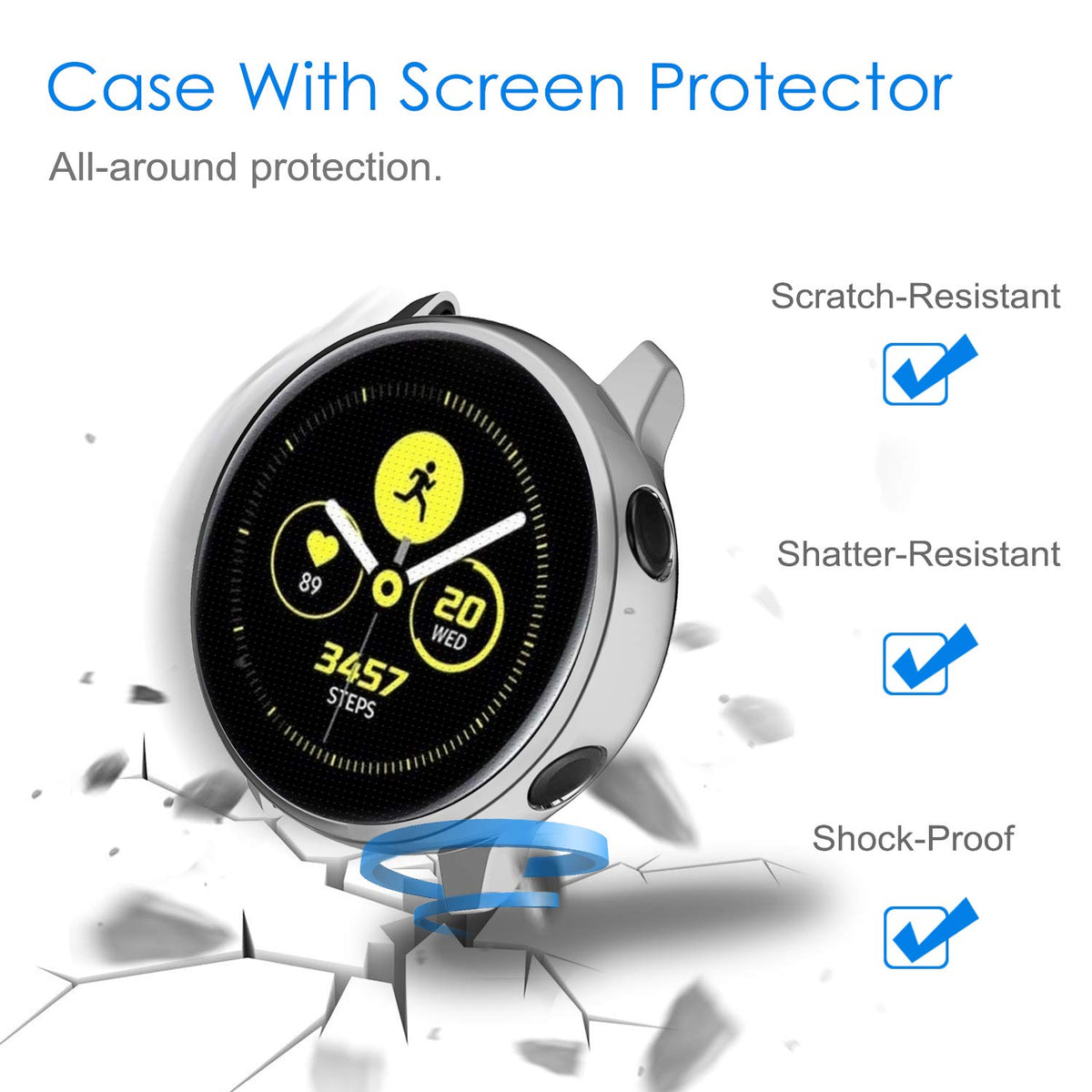 Ultra-Thin Soft Full Cover Case Compatible With Samsung Galaxy Watch Active 40Mmprecise Designprecise Cutouts On Your Galaxy Watch Without Affecting The Band Insertion Or Watch Charging As Welltouch Screentouch Screen Interface Functions 99 Fluently With Case On Easy Access To All Controls, Buttons And Galaxy Active Watch Features, Touch Sensitivity Remains Almost The Samefull Protectionsoft Tpu Plated Case With Built-In Screen Protector Prevents Your Watch From Dust, Fingerprints And Scratcheswhat You Getplated Case With Screen Protector For Galaxy Watch Active 40Mm X 3