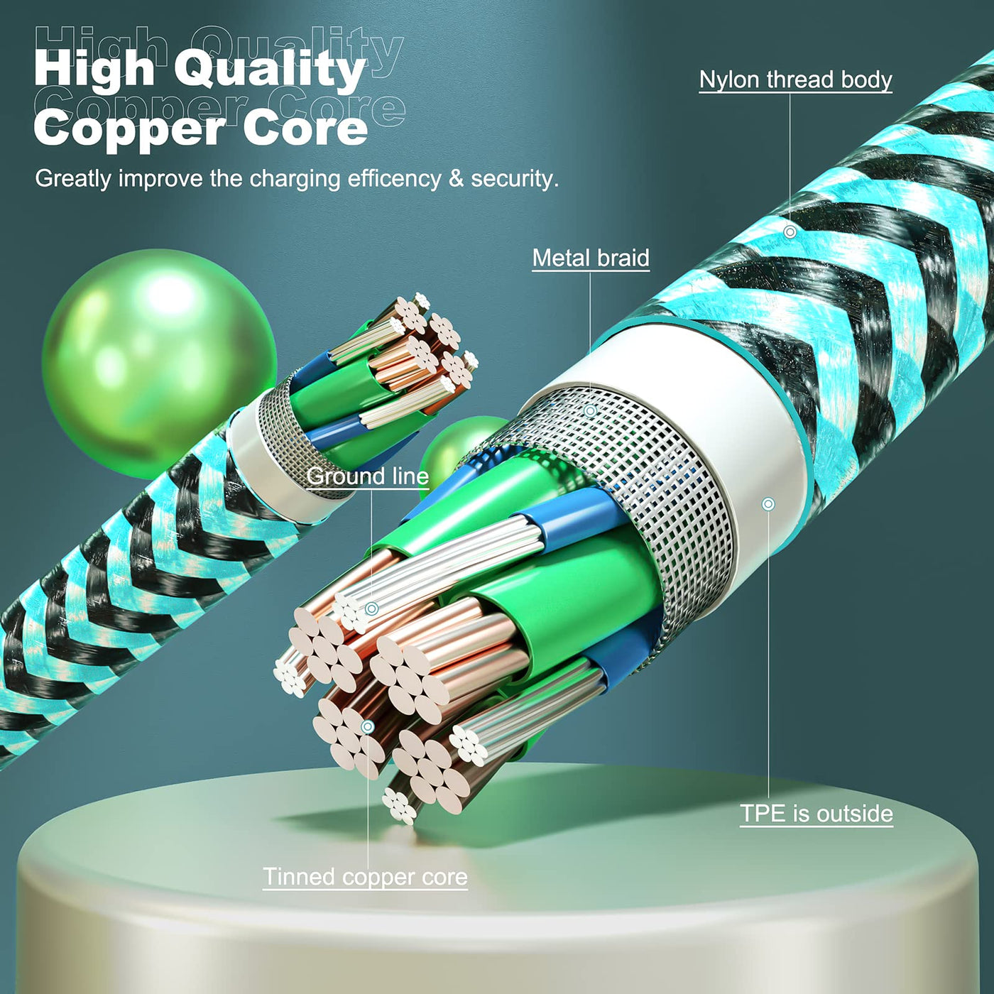 Q: How long is the charging cable and why is it beneficial?A: Each charging cable in the pack is 6 feet long, allowing for greater flexibility and comfort while using your device. The extra length is particularly useful for charging in places like the backseat of a car or while lounging on a bed or sofa.