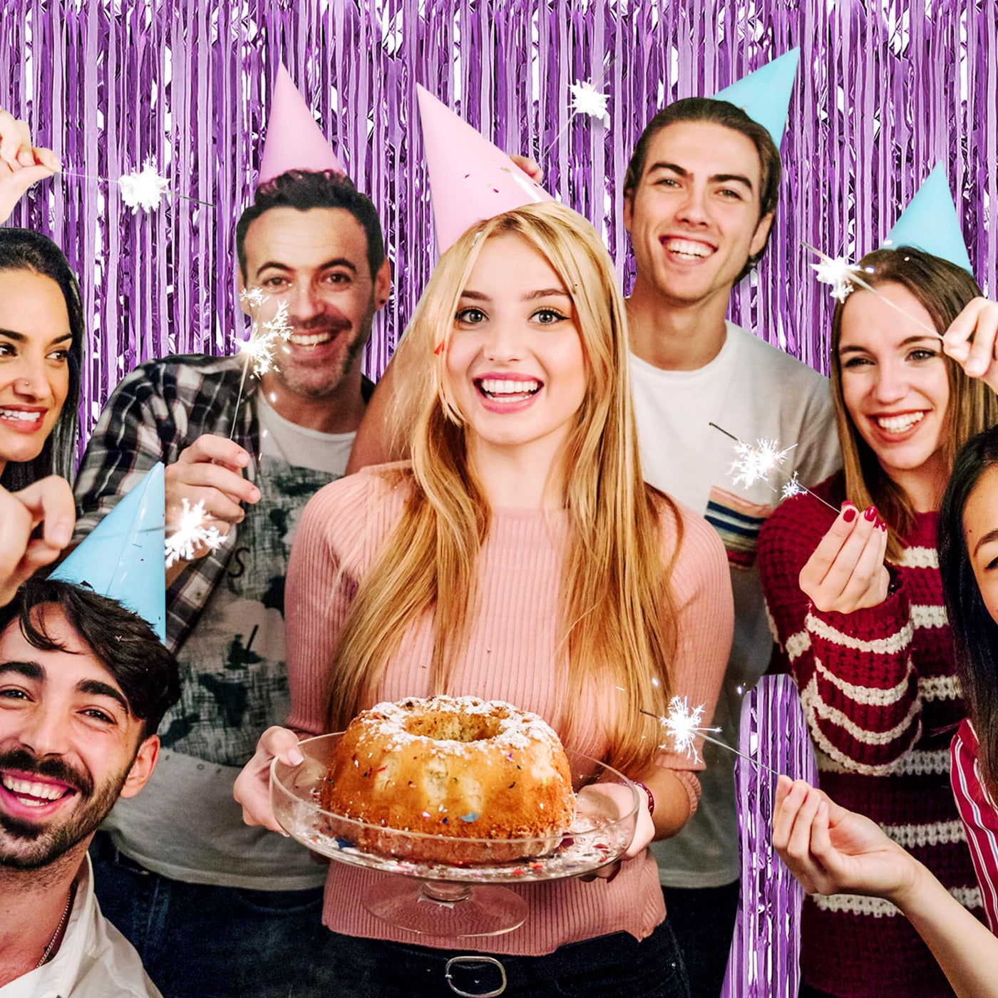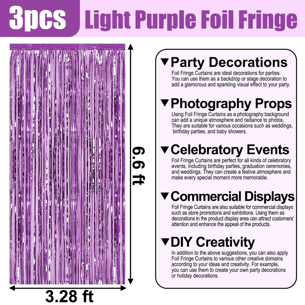 3 Pack Light Purple Foil Fringe Curtain Backdrop, 3.28Ft X 6.6Ft Metallic Tinsel Foil Fringe Streamer Curtains For Photo Booth,
