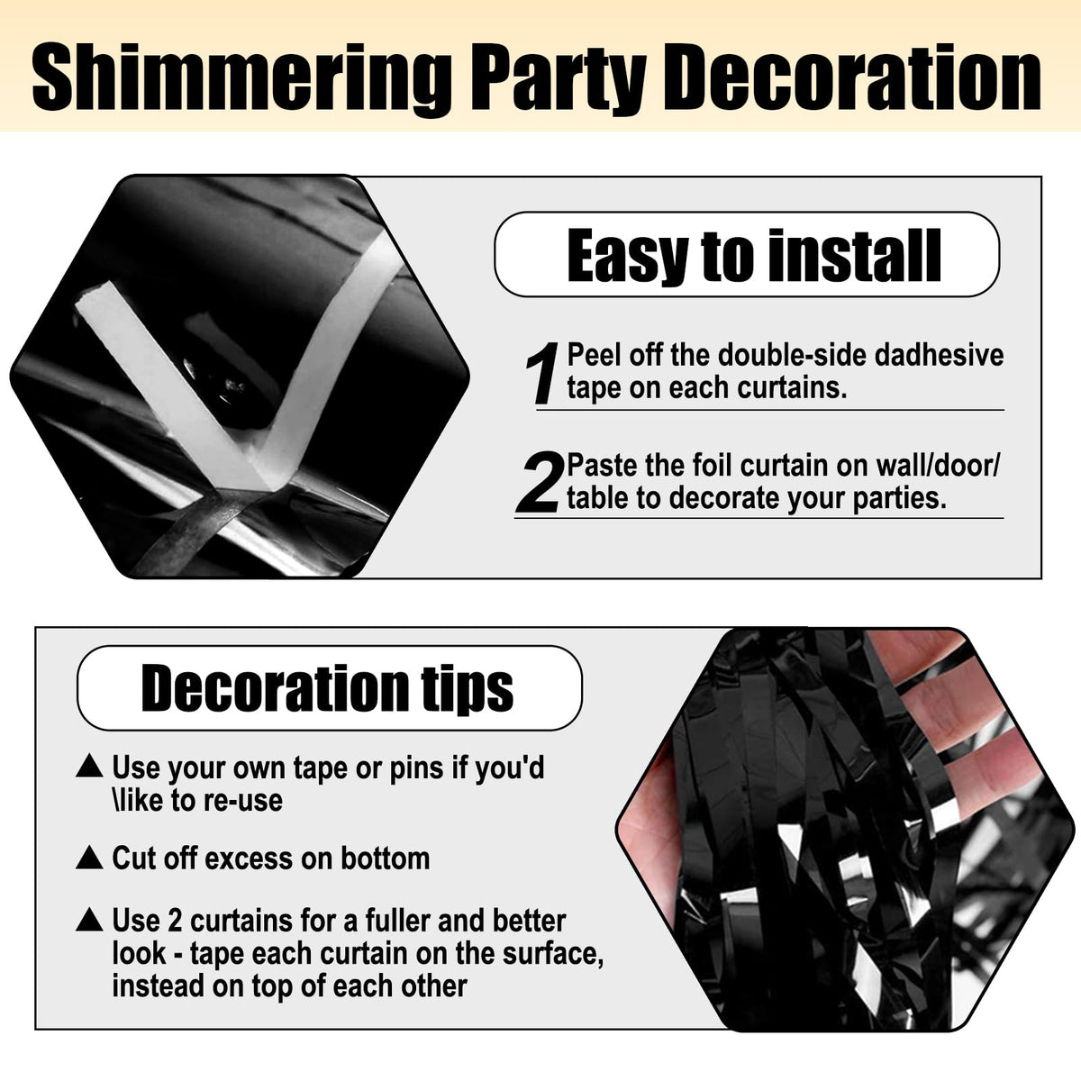 This Foil Fringe Curtain Is Wonderful Finishing Touch For Any Theme Party Decoration! All The Guests Who Come To Bless You Will Feel Your Love And Beauty! Size:3.2 Feet Wide By 6.6 Feet Long Package Includes:3 Pack Foil Fringe Curtain Perfect As A Party Backdrop For Birthday,Under The Sea,Ocean,Bachelorette,Wedding,Bridal Shower,Baby Showers,Graduations,Christmas,New Year Eve And More!