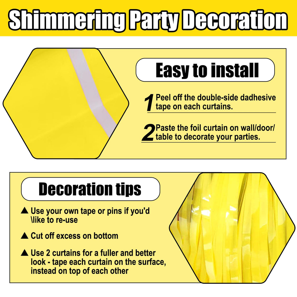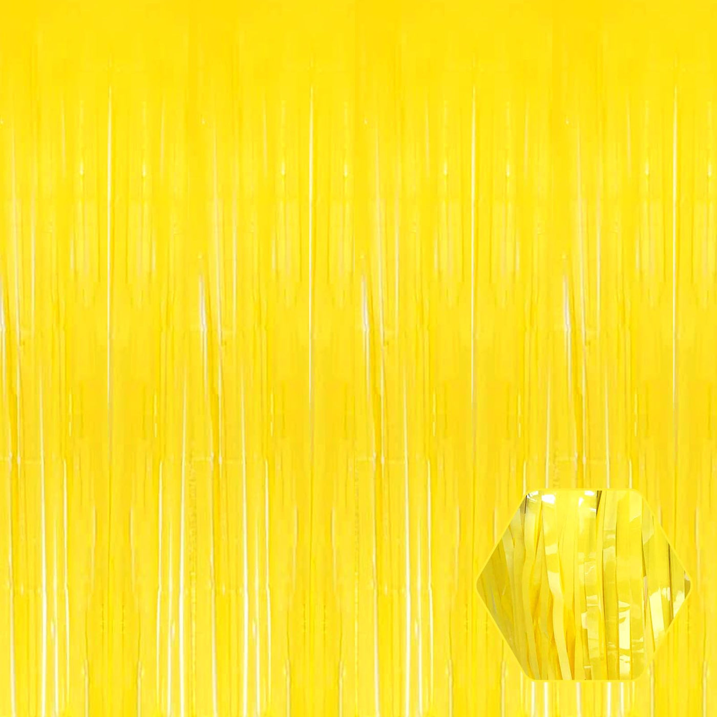 3 Pack Macaron Yellow Foil Fringe Curtain Backdrop, 3.28Ft X 9.8Ft Metallic Tinsel Foil Fringe Streamer Curtains For Photo Booth