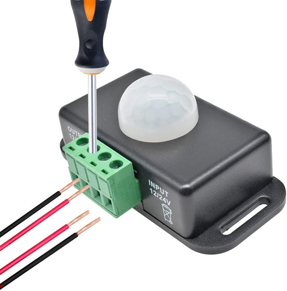 3-Pack Pir Motion Sensor,Aideepen Dc 12V Pir Motion Sensor 8A Body Motion Sensor Pir Switch Automatic With Motion Sensor Black The Switch Detects The Infrared Light Of The Human Body And Uses It To Control The Load 120 Degree Detection: Human Body Induction Detection Distance: 5-8 M, Voltage: 12-24 V, Current: 8 A Use: Mainly Used For Controlling Lamps And Light Strips. Note: This Product Has No Buttons, Only The Other Side Of The Case, Marks 1 To 10 Minutes, Which Can Be Rotated To Choose The Time
