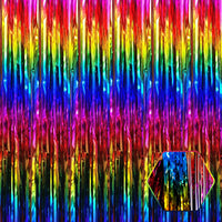 Q: What are the dimensions of the 3 Pack Rainbow Foil Fringe Curtain Backdrop?A: Each foil fringe curtain measures 3.28 feet in width and 8.2 feet in length, providing ample coverage for your party backdrop needs.
