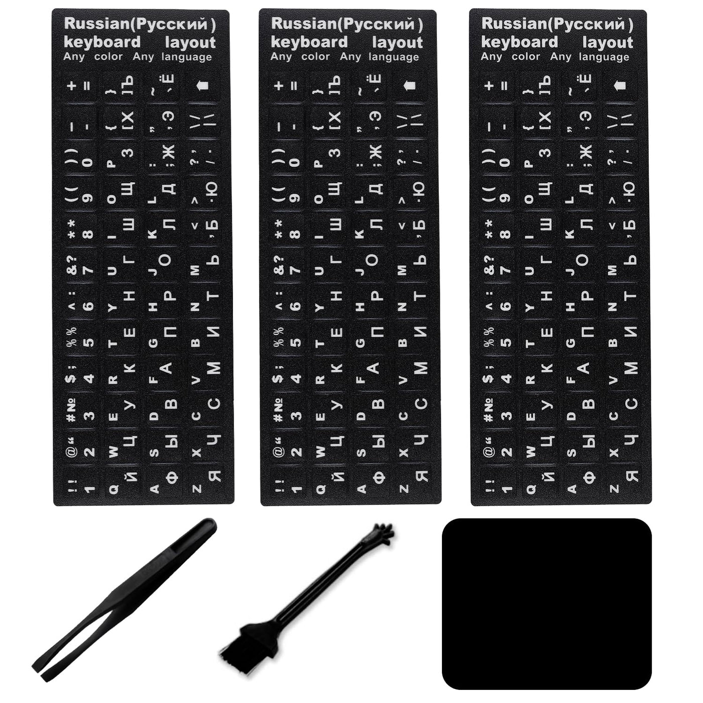 3 Pack Universal Russian Keyboard Stickers (6 In 1), Cyrillic Keyboard Letter Replacement Sticker, Black Background With White L