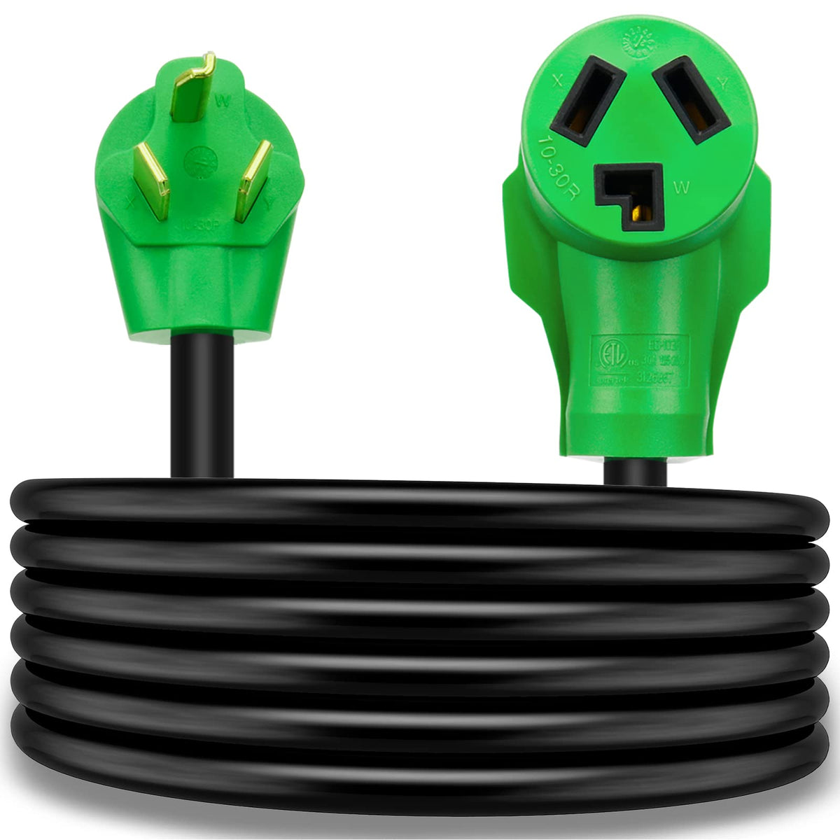 3 Prong 15 Feet Dryer Extension Cord Specification: Male Plug: Nema 10-30P Female Plug: Nema 10-30R Material: Made Of Premium Copper, Pvc Length: About 15 Feet Pattern: Stw Wire: 10 Gauge Voltage: 125/250V Amp Rating: 30 Amp Power: Up To 7500 Watt. Pakage Include : 1 X 50 Feet Dryer Extension Cord Notes: Don'T Use It When You Are Humid. Let The Children And Pets Away From The Extension Cord. Don'T Cover It With Anything. Unplug The Plug When Not In Use Why Choose Us: Green Allows You To Identify More Easily. Pure Copper Wiring Coating, Heavy-Duty Flame Retardant, Heat Resistant, Anti-Uv Pvc. Both Ends Of The Cord Are Molded Plugs, Design With Clamping Space Suitable For Level 2 Ev Charging