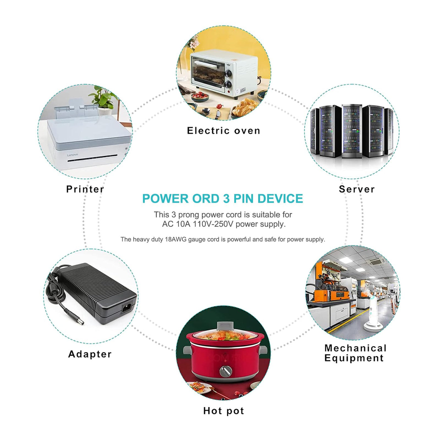 Package Includes: 1 Pack 3-Slot 18Awg Power Cord Cable 6.6Ft Long
