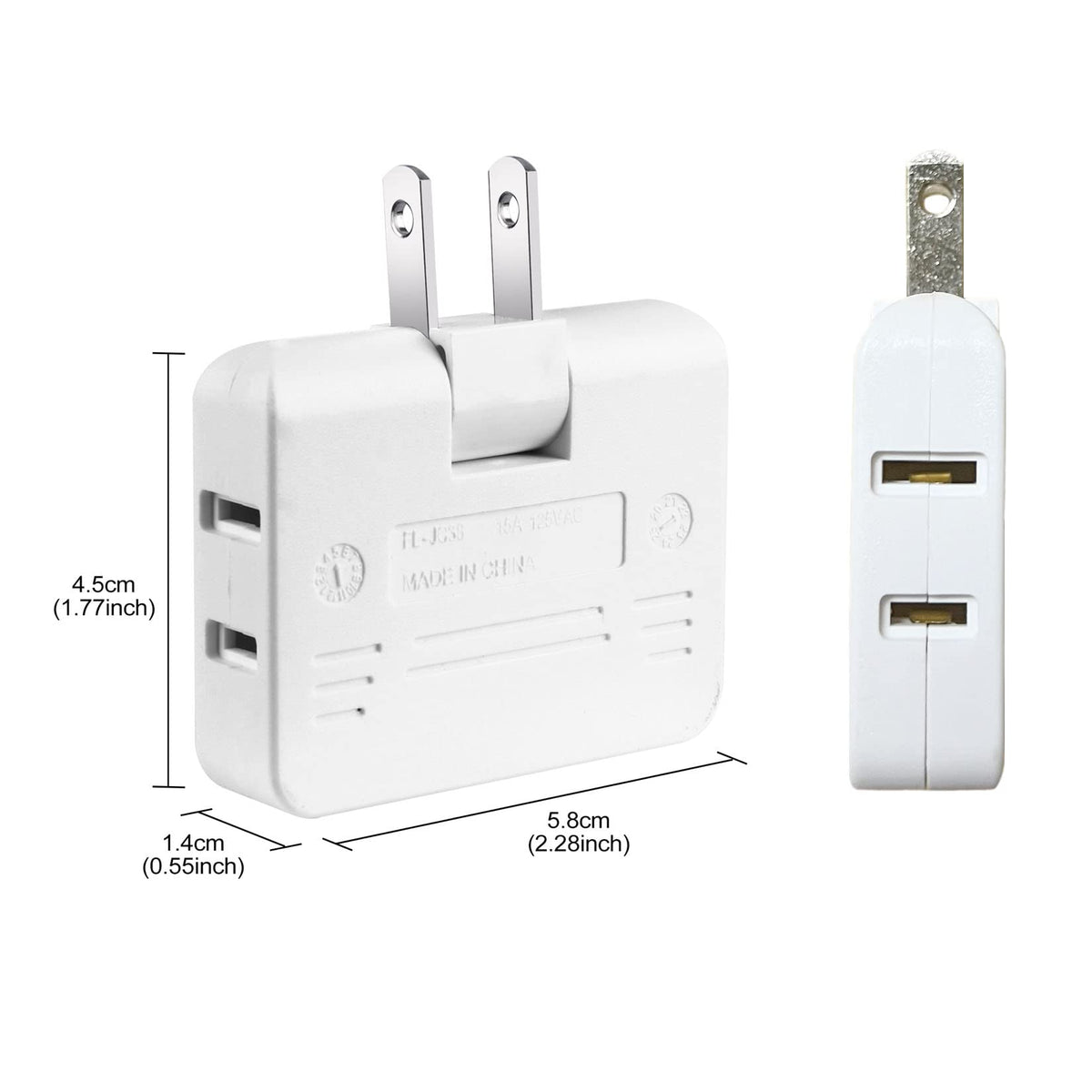 3 In 1 Rotating Plug Adapter Product Description: 1. 180-Degree Rotating Be Bent Into Different Angles, Without Obstructing Other Outlets. 2. Small Size, Light Weight, Very Suitable For Family And Travel Use. Detial Specifications: Voltage: Ac 125V Rated Current: 15A Power: 1875 Watt Material: Pc Flame Retardant Material Conductor Material: Pure Copper Color: White Package Includes: 2 Pack Rotatable Socket Converter (White)