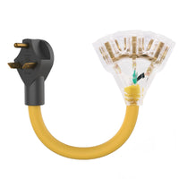 Q: Is this adapter suitable for outdoor use?A: Yes, the adapter is equipped with a heavy-duty flame retardant STW jacket and is designed for safe use in various environments, including outdoor settings like RV camping and construction sites.