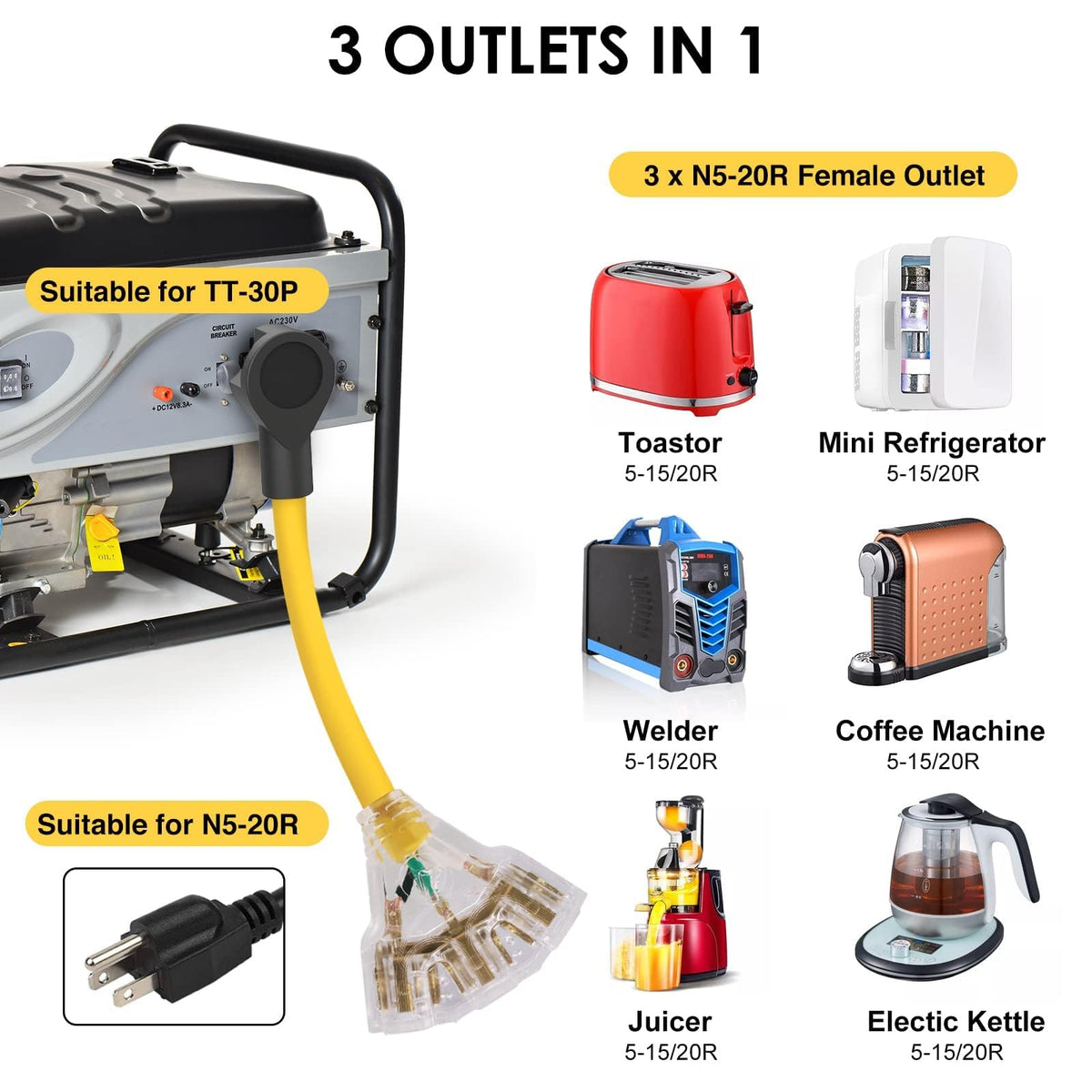 Q: Can I use this adapter with my generator?A: Absolutely! This adapter is specifically designed to connect to generators featuring a TT-30 outlet, making it a versatile solution for powering household tools and appliances during emergencies or outdoor activities.