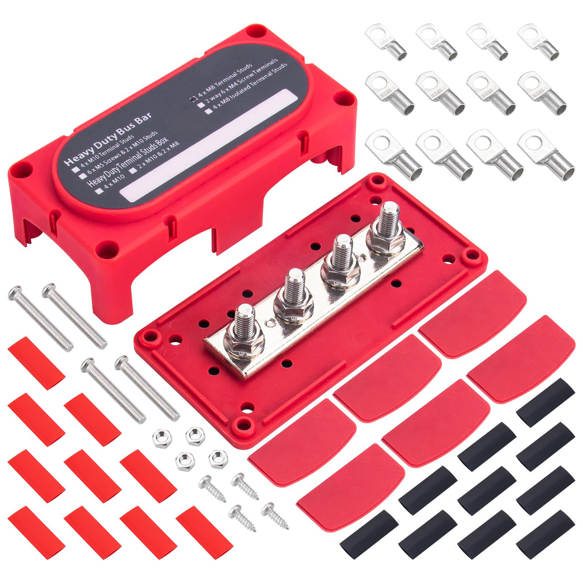 ?? High-Quality Material ?: Battery Distribution Block Is Made Of Brass And Nickel-Plated For Good Electrical Conductivity And Rugged Rust Resistance, Ensure Durability And Long-Lasting Performance, Even In Harsh Marine Environments. It Is Designed To Resist Rain And Dust, Air, And Seawater. | ?? Versatile Voltage Compatibility ? : Size Of Power Distribution Block Is 138 X 69 X 44.5Mm . Stud Size: M8(5/16''), Power Distribution Block Is Designed To Handle Up To 300A Of Ac & Is Compatible With 12V, 24V, And 48V Dc Power Systems, Providing Flexibility In Its Use. | ?? Four M8 Studs ?: The Bus Bar Features Four 5/16'' (M8) Studs, Allowing For Secure And Easy Connection Of Multiple Wires And Cables. | ?? Gift Includes Wire Lugs And Heat Shrink Tubes ?: As A Bonus, This Product Comes With 12 Cable Wire Lugs Of 3 Different Wire Sizes Of M8 Stud. Making It Easy To Connect Any Cable Size To The Bus Bar. | ?? Safety Protection ?: The Base Is Made Of Nylon-Glass Fiber Reinforced (Flame-Retardant Plastic) To Protect The Safety Of Equipment And People. | ?? Easy Installation ?: The Terminal Block Is Mounted With Screws On The Surface And Four Mounting Holes Make The Block Easier To Install In Any Direction. The Removable Window Allows For Unobstructed Wiring. | ?? Unique Design ?: Design Of 6 Detachable Windows, The Number Of Windows Can Be Disassembled According To User Needs For Unobstructed Wiring. The Battery Terminal Base Has A Non-Slip Sponge For Added Stability. The Blank Writing Space On The Top Allows Easy Labeling Of Each Branch. | ?? Wide Application ?: It Is Suitable For Cars, Rvs, Trucks, Boats, Solar Energy, And Other Electrical Equipment, Etc.