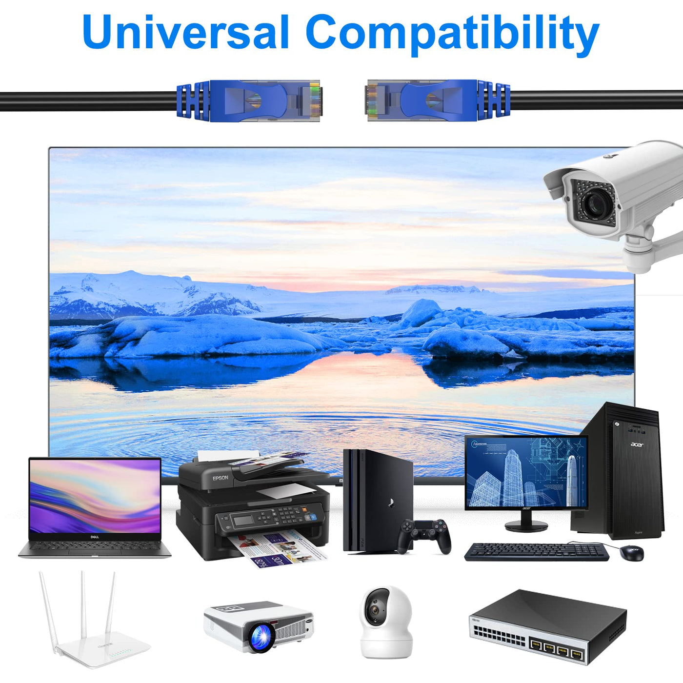 Q: Is this cable compatible with older Ethernet standards?A: Absolutely! The 30FT Cat6 Outdoor Ethernet Cable is backward compatible with previous standards such as Cat5e and Cat5, ensuring seamless connectivity with older devices and networks.
