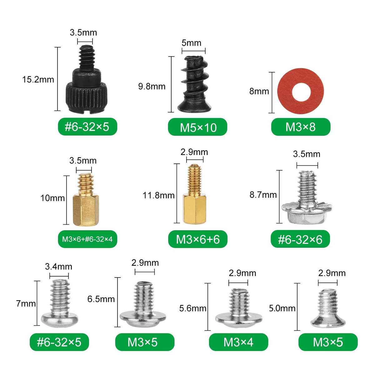 Why Choose Lukaisen 350 Pcs Computer Screw Assortment Kits? About Lukaisen -We Are A Professional Manufacturer Of Fasteners. Our Product Are Sold To 25 Countries In The World, With Annual Shipments Of More Than 50 Billion Pieces. -Every Computer Screw We Sell Goes Through 5 Process Tests To Ensure That The Product Delivered To Customers Are Perfect. About Lukaisen 350 Pcs Computer Screw Assortment Kits - The Most Popular Standoffs Sizes: Included Both M3X6+6 & M3X6+#6-32X4 Brass Standoffs Screws Which Can Be Applied To 99.9% Computer Case. You No Longer Need To Worry About The Mismatch Of The Brass Standoffs Screws You Bought. - High Quality Material All Computer Screws Are Made Of High Quality Brass, Steel And Fiber Paper, Steel With Nickel And Black Zinc Plated Which Have Superior Rust Resistance And Excellent Oxidation Resistance. - Wide Applicationperfect For Pc Case, Power Supply, Motherboard, Hard Drives, Fan And Floppy/Cd-Rom/Dvd-Rom Drives Fixed Installation. It Is Your Best Partner In It Work Specifications: - Quality: 350 Pieces - Material: Brass, Steel And Fiber Paper - Sizes: #6-32, M3, M5 - Weight: 8 Oz What You Get - 30Pcs X M5X10 Chassis Fans Screws Black - 30Pcs X #6-32X6 Chassis High Strength Screws - 50Pcs X #6-32X5 Hard Drive Screws - 50Pcs X M3X5 2.5 Ssd Screws - 12Pcs X M3X6+6 Brass Standoffs Screws - 12Pcs X M3X6+#6-32X4 Brass Standoffs Screws - 50Pcs X Cd-Rom/2.5 Hdd Screws - 12Pcs X Chassis Hand Twist Screws Black - 50Pcs X Main Board Fixed Screws - 54Pcs X Main Board Insulation Gaskets - 1Pcs X Storage Box With Clear Label 1-Year Manufacturer'S Warranty And 30 Days No-Questions-Asked Return Policy