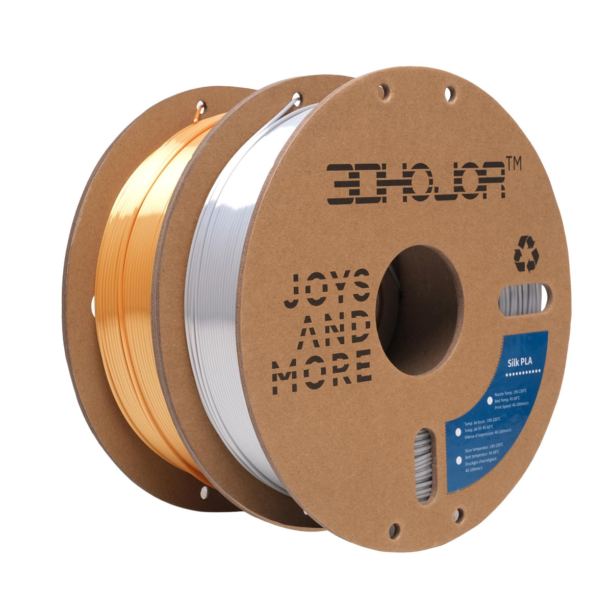 Q: What temperature settings are recommended for printing with Silk PLA?A: For best results, it is recommended to print with the 3DHoJor Silk PLA filament at a nozzle temperature of 210°C to 230°C and a heated bed temperature of 45°C to 60°C. It's advisable to perform a temperature tower test to find the ideal settings for your specific printer.