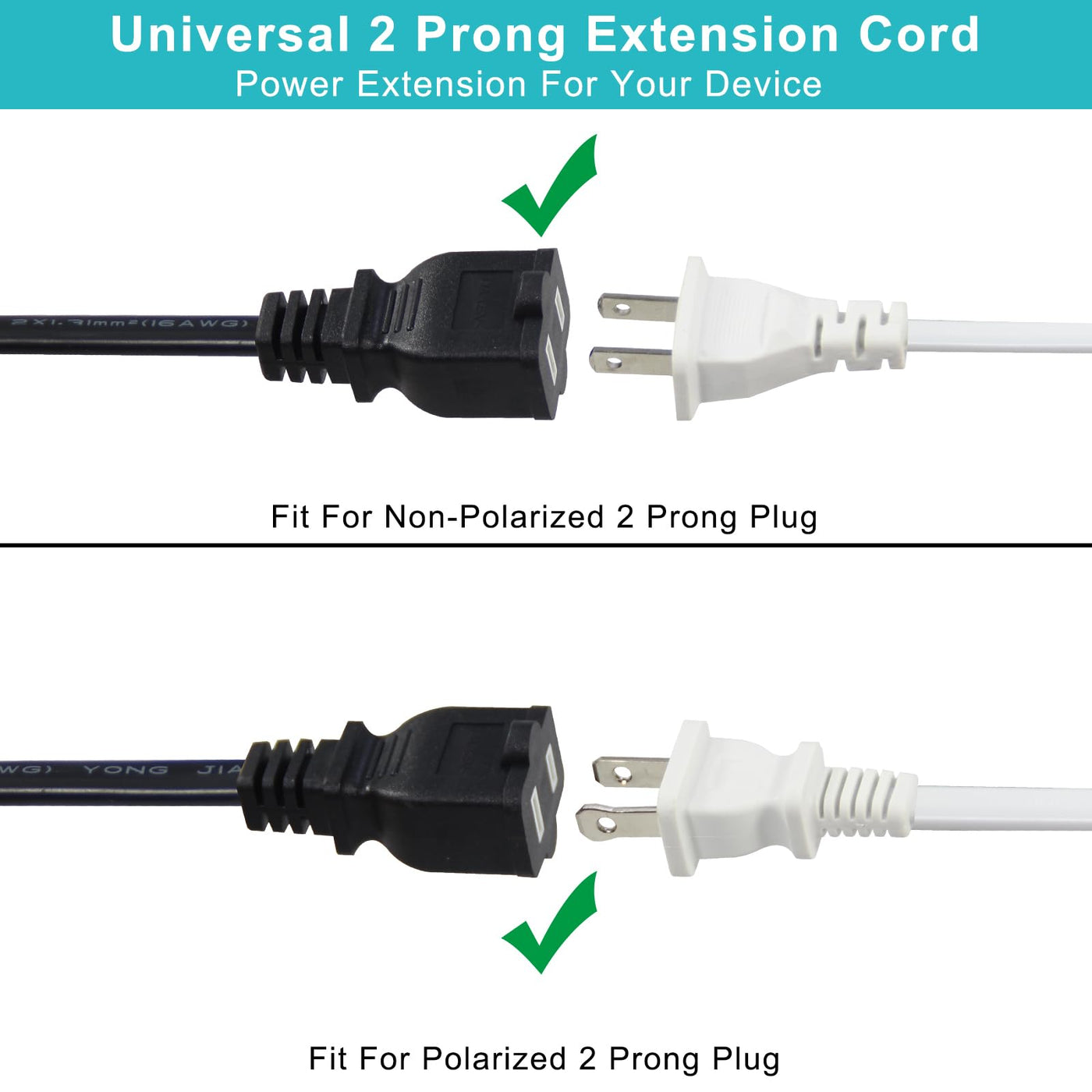 3Ft Polarized 2Prong Extension Cord Black Replacement Us Ac Two Prong Male To Female Extension Cord,16Awg 13A 125V Short Low P