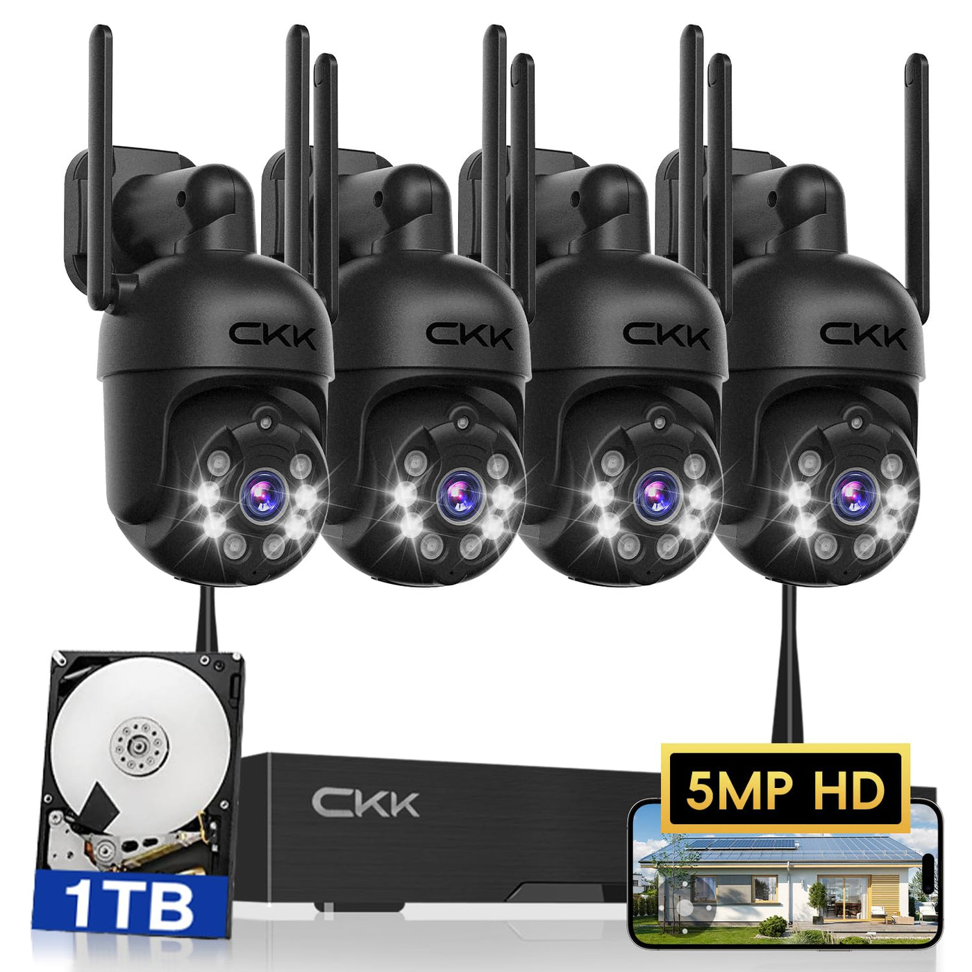 Q: What is included in the 5MP Wireless Security Camera System package?A: The 5MP Wireless Security Camera System package includes four 5MP PTZ cameras, a 10-channel 3K WiFi NVR with a pre-installed 1TB HDD, and necessary accessories for installation.