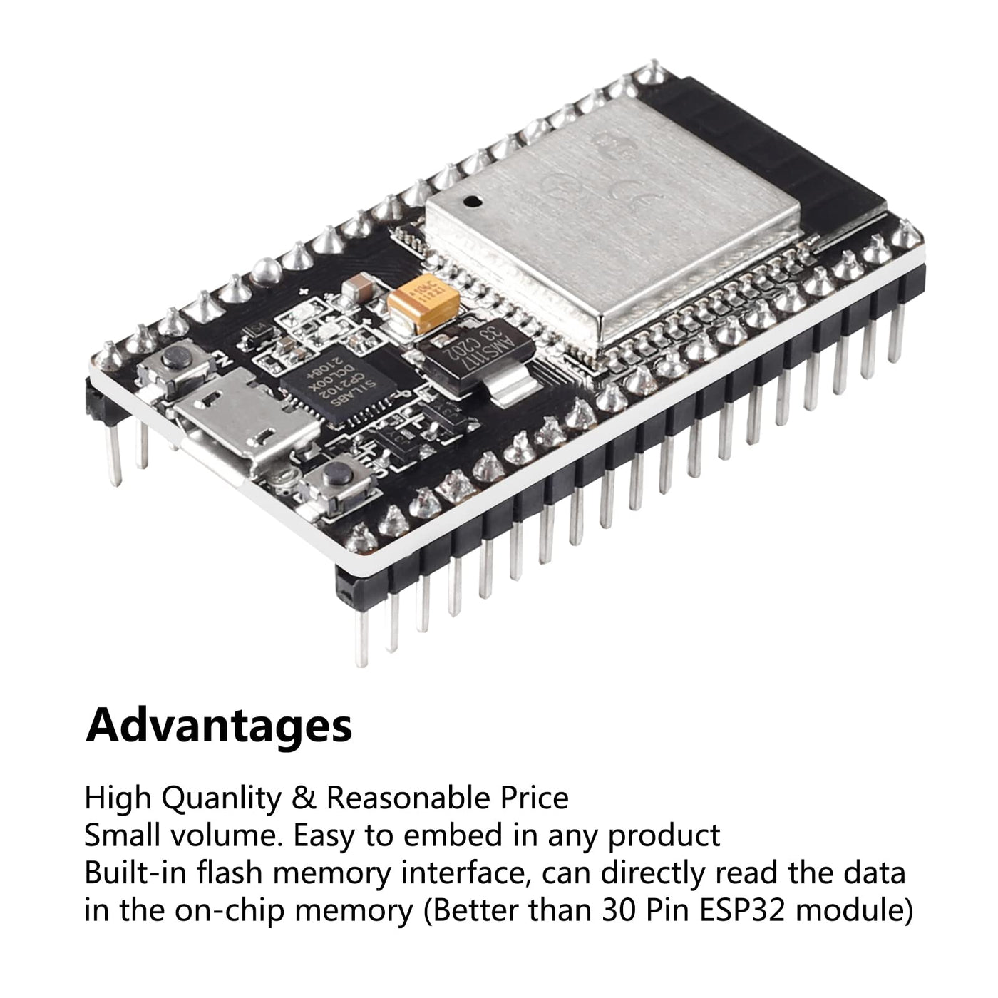 Small Volume, Narrow, Easily Embeded To Other Products Strong Function With Support Lwip Protocol, Freertos Supporting Three Modes: Ap, Sta, And Ap+Sta Supporting Lua Program, Easily To Develop Lua Programming Language Support Complete Microcontroller With Wlan (802.11Bgn) And Bluetooth (Classic And Le) Reset And Boot Buttons Are Available, So A New Firmware Can Be Quickly And Easily Installed The Development Board Combines A Cpu With 2 Tensilica Lx6 Cores, Clocked At Up To 240 Mhz, And 512 Kilobytes Sram In A Single Microcontroller Chipgpio Function Classification: Adc-Analog Signal Sampling: Available Gpio Numbers-32, 33, 34, 35, 36, 39 Dac-Analog Output: Available Gpio Numbers-25, 26 Uart-Serial Communication: Available Gpio Numbers - 1(Tx0), 3(Rx0), 10(Tx1), 9(Rx1) , 17(Tx2), 16(Rx2) Spi-Spi Bus Interface: Available Gpio Numbers - Hspi(14,12,13,15) Vspi(23,19,18,5) I2C-I2C Bus Interface: Available Gpio Numbers - Sda(21) Scl(22) (Micropython Does Not Implement I2C In Hardware) Package Included: 3 X Esp32 Esp-32D Development Board