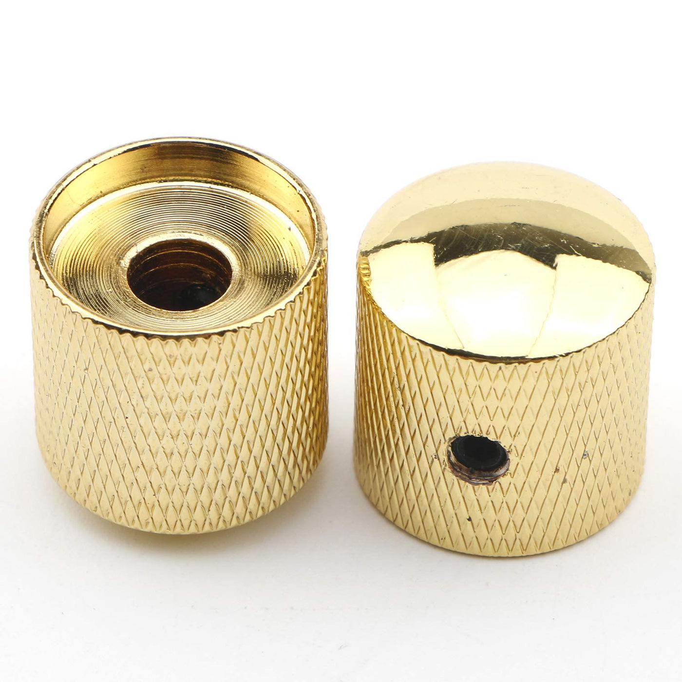3Pcs Metal Volume Tone Dome Guitar Speed Control Knurled Shaft Pots Knobs With Keys Screws Set For Electric Guitar Or Bass (Gold