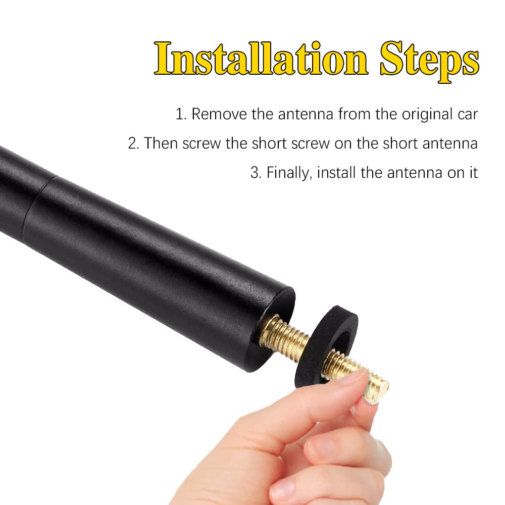 Short Antenna Features The Short Antenna Is Waterproof, Dust-Proof, Heat-Resistant, Freeze-Resistant And Wear-Resistant. It Also Can Provides High-Quality Signal Reception. Easy To Installa Remove The Old Antenna From The Car, Choose The Appropriate Screw For The Vehicle Antenna Bracket, Install The Antenna Can Be. Package List 1 X Antenna, 4 X Screws Bolts, 2 X Rubber Rings