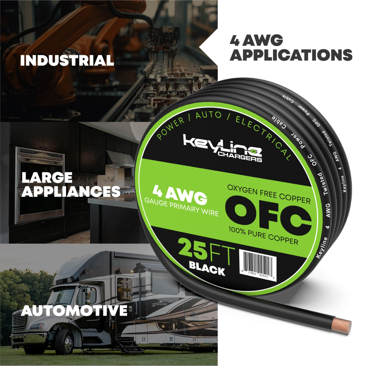 From Design, Engineering And Construction, Our Power/Ground Wire Is Built Not Only To Look Good But To Maximize The Performance Of Any Audio System. Easily Connect Your Battery To Your System'S Amplifier With This High-Quality Ofc Wire.Product Features:25Ft Of Black Ofc 4 Gauge Cablesoft Jacket For Maximum Flexibilitytrue Gauge Specstranded Bundleshigh Quality Stranded Ofc Wire (Oxygen-Free Copper)Custom Installations: This Oxygen Free Copper Primary/Ground Wire From Our Store Lets You Easily Connect Your Speakers To Amplifiers, Work On Low-Voltage Projects Or Update Your Automotive Wiring. Every Do-It-Yourself Project Should Start With Our Primary/Ground Wires.Colour Coded&Nbsp;We Use Colour Jackets To Easily Find The Polarity Of The Wire, Making It Quick And Easy For Any Projectsdo It Yourself Projectscan Be Widely Used In Lighting, Household Appliances, Electric And Automobile Wiring, Science Fair Projects, Etc.Various Gauges And Lengthsdepending On Your Need, We Offer A Variety Of Gauges For Audio Or Electrical Needs As Well As Various Lengths And Colours For Your Convenience.