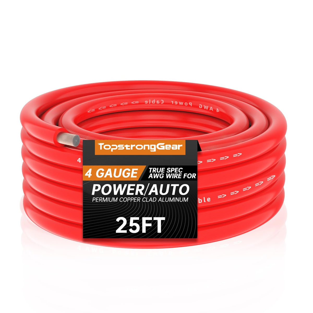 4 Gauge Red 25Ft Power/Ground Wire Copper Clad Aluminum Cca True 4 Awg Power Wire True Spec And Soft Touch Cable (Red)