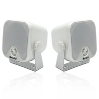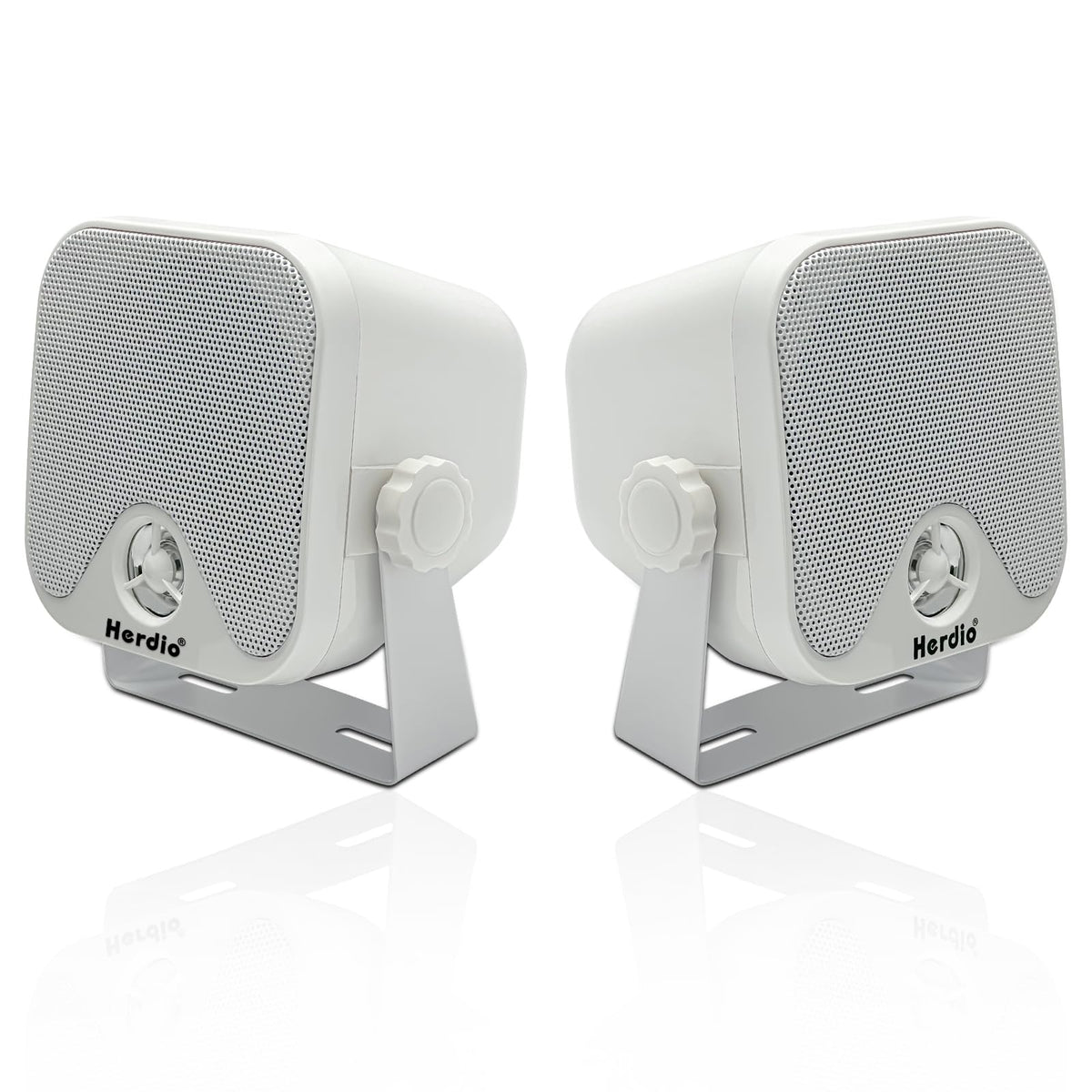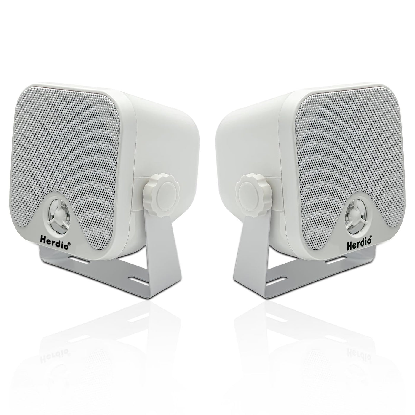 Color:White 2-Way 4'' Marine Grade Hifi Full Range Stereo Pod Speakers With 1'' Pei Dome Tweeter: Marine Grade Waterproof Construction: The Custom Tooled Design For High Power, Rust Proof Speaker Grills And Heavy Duty Engineered Plastic Cabinet Ensure The Speakers Withstands Severe Outdoor Environments. It Is Perfect For Marine, Boat, Utv, Atv, Truck, Golf Cart, Powersport, Motorcycle, Motorbike, Rv, Automobile & Off-Road Vehicles. Compact And Powerful: The Speakers Is Compact In Size, But The Sound Is Really Loud! The Maximum Power Handling Is 100 Watts A Pair , Frequency Response 80 - 20,000Hz , Impedance 4 Ohms Small Size For Easy Installation: The 4 Marine Surface Mounted Box Speakers Comes With Brackets And Bolts Allows You Easily Install Them Into A Place Where Limited Space Available Only. Product Dimensions 4.4''(112Mm) (W) X 4.4''(112Mm) (H) X4''(102Mm) (D)