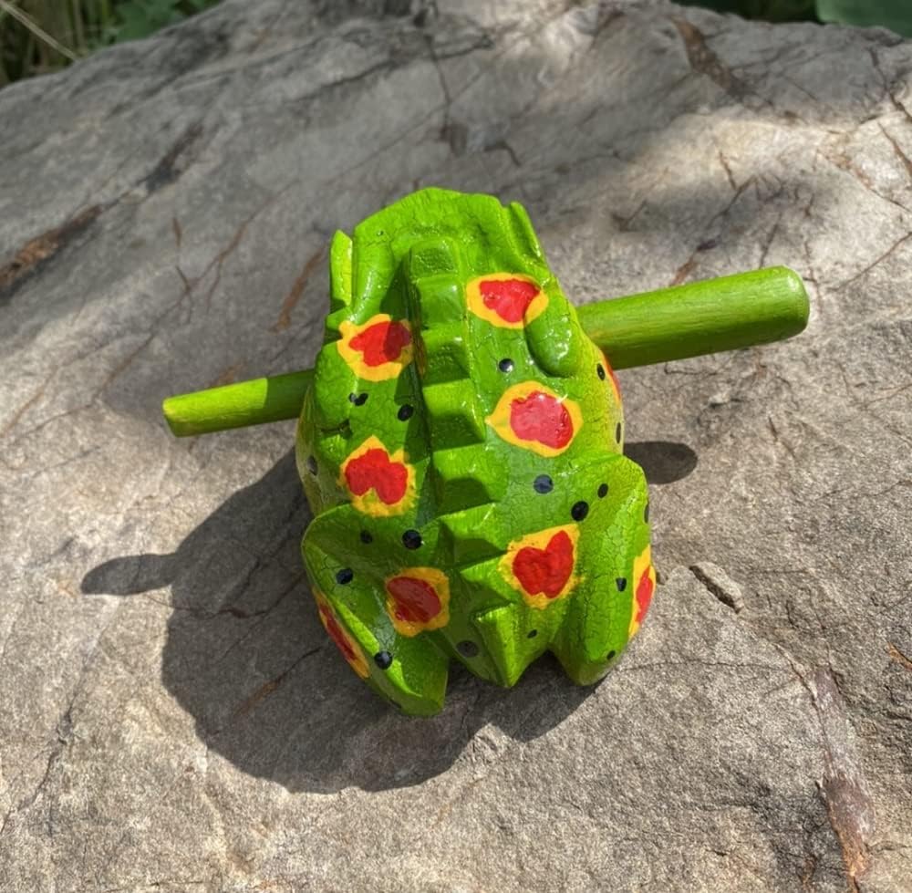 4 Inch Guiros Percussion Instruments Wooden Frog, Wooden Frog Musical Instrument Home Decor Handcrafted Decoration (Green Fancy