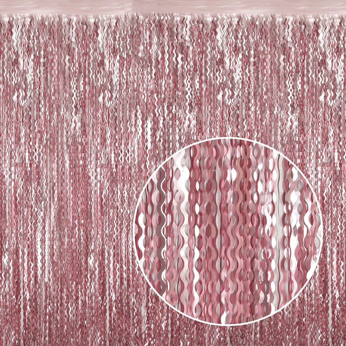 Q: What are the dimensions of the Pink Tinsel Curtain?A: Each curtain measures 3.3 feet by 6.6 feet, making them ideal for various decorative applications.
