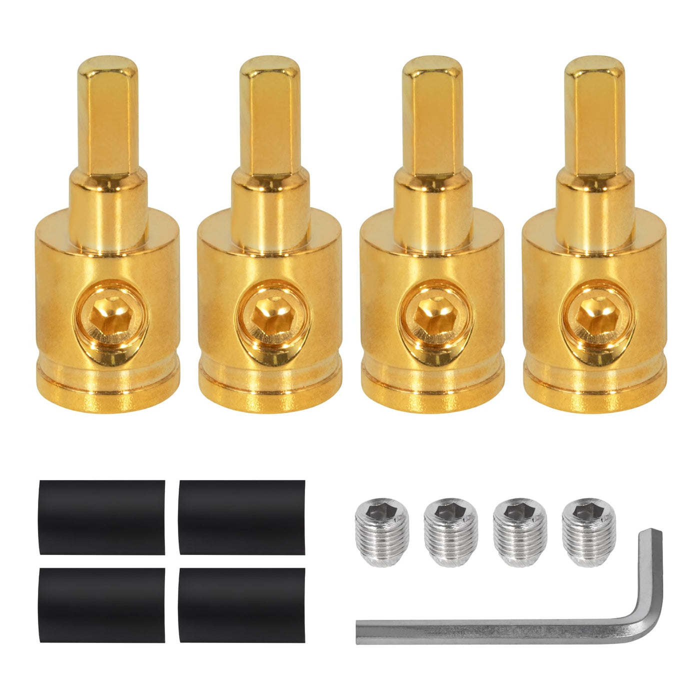 4 Pack Amp Input Reducer From 0 Gauge To 4 Gauge With Hex Screw Clamp, Includes Extra Screws, Heat Shrink Tubes & Hex Tool For C