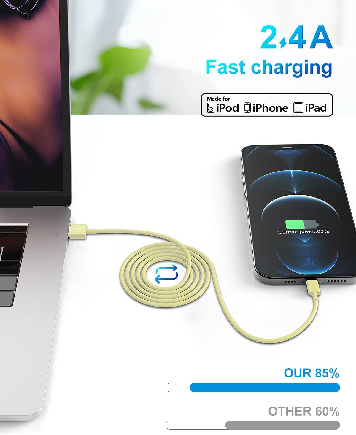 Q: How does the charging speed of this cable compare to standard cables?A: This cable supports fast charging with a maximum output current of 2.4A, significantly improving charging speed compared to standard cables. Its high-quality four-core copper wire enhances both charging and data transmission efficiency.