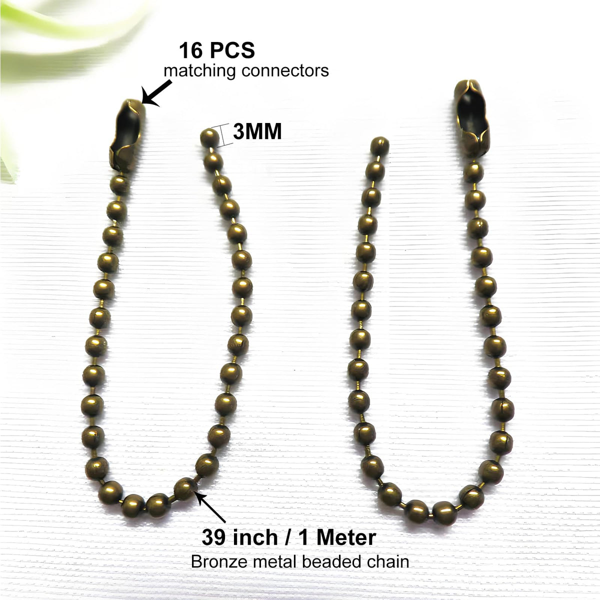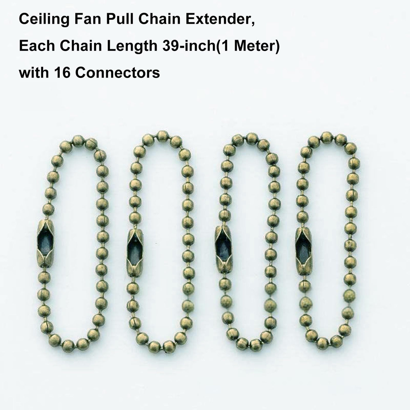 4 Pack Ceiling Fan Pull Chain Extender,Each Chain Length 39 Inch(1 Meter) With 8 Connectors,Standard 3 Mm Diameter Beaded Ball,